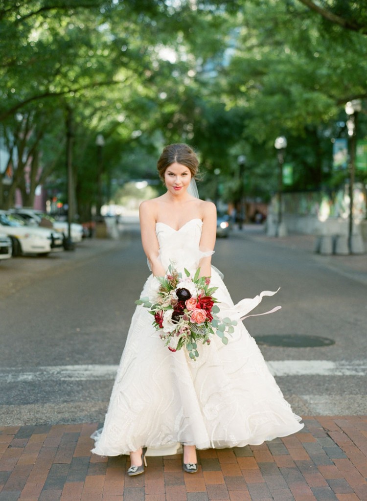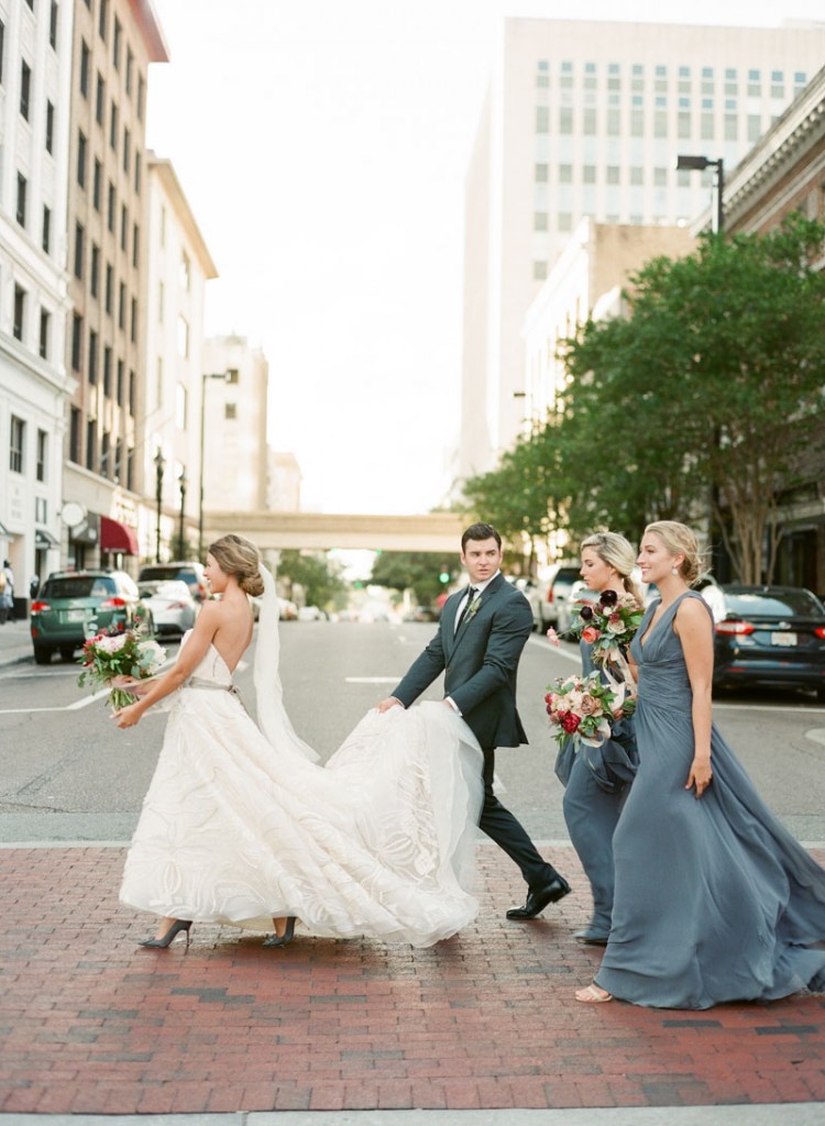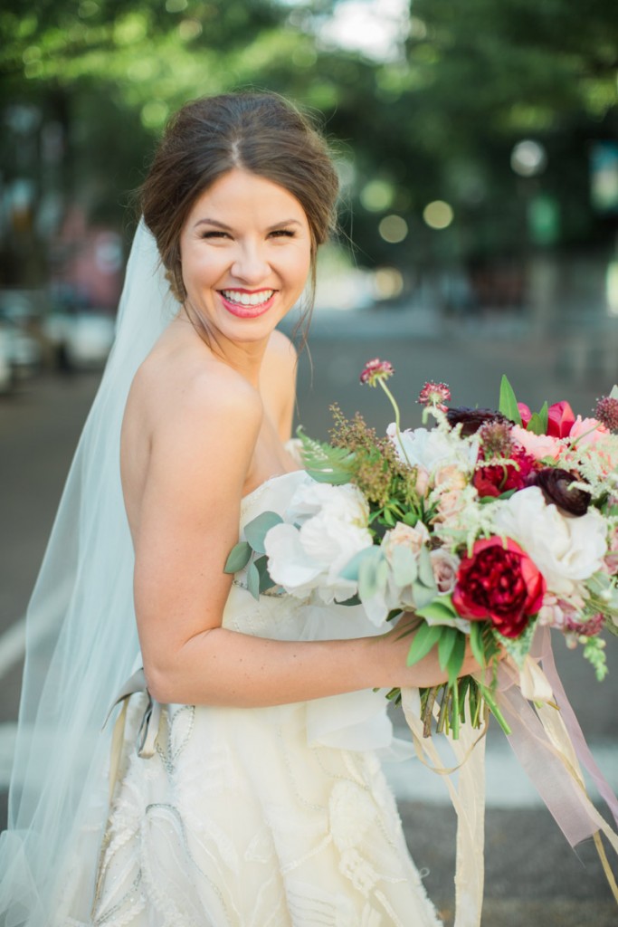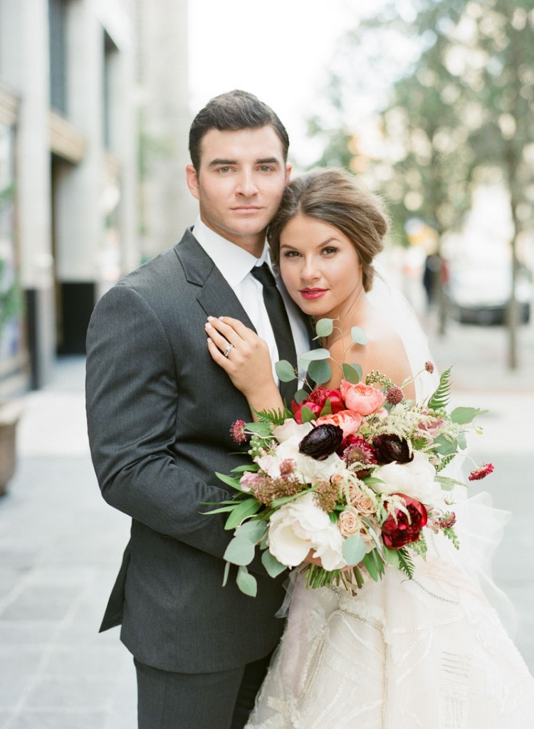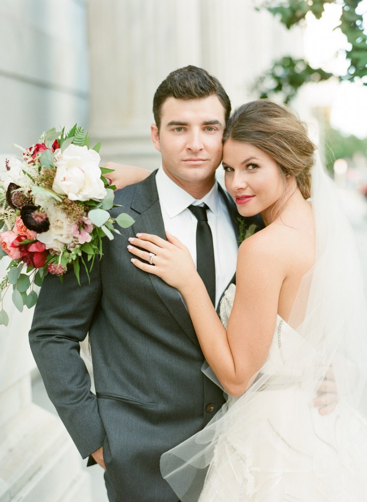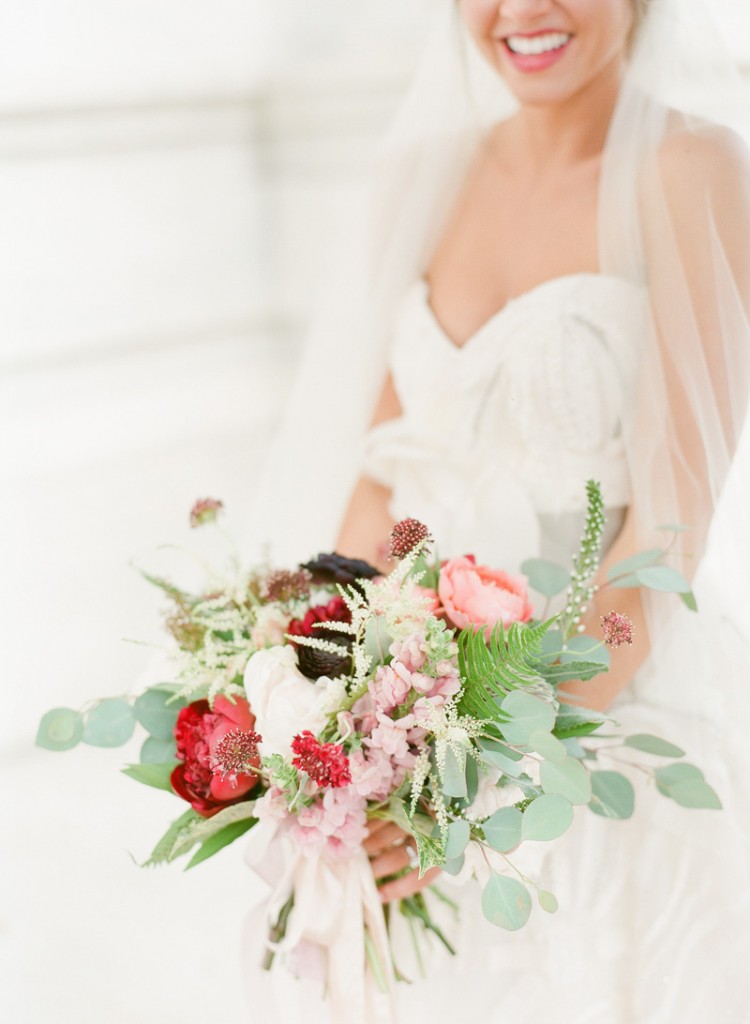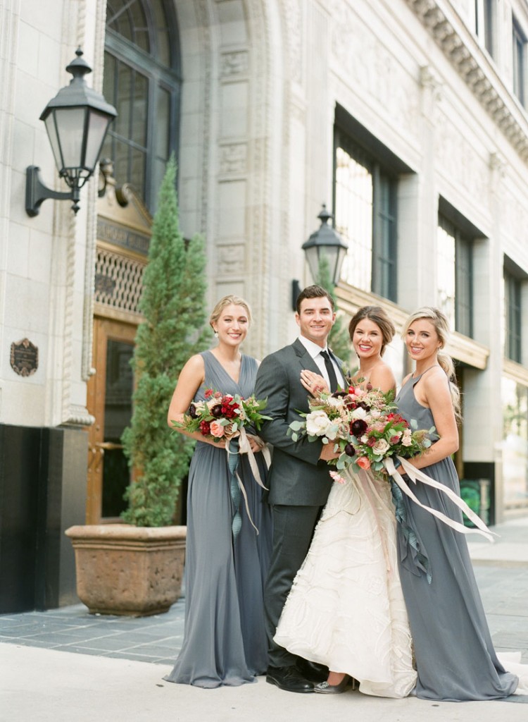 gray donna morgan bridesmaid dresses loose bouquet peony ranunculus eucalyptus