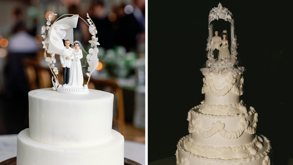 Vintage cake toppers transcend eras — providing that sweet, old-school touch. Be sentimental and borrow your parents’ topper, or go the sustainable route and source a vintage one from your favorite antique store.