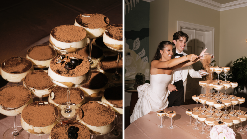 This café classic is stepping out of the dessert case and into the wedding reception. Tiramisu’s layers of espresso-soaked ladyfingers, mascarpone cream and cocoa makes it the ultimate pick-me-up dessert. Whether plated as a traditional slice or served in a tower of coupes, your guests will appreciate the coffee boost as they hit the dance floor.