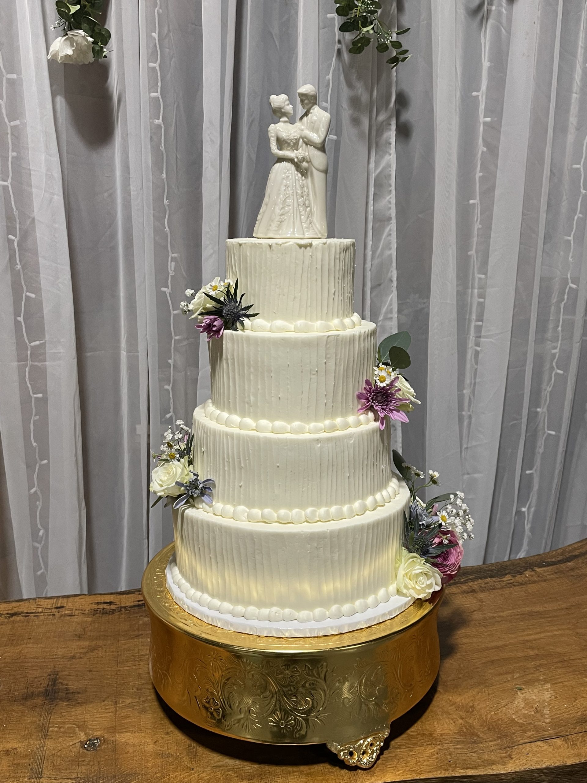 four-tiered-textured-buttercream-wedding-cake-Artful-Cakery-by-Julie-with-fresh-flowers