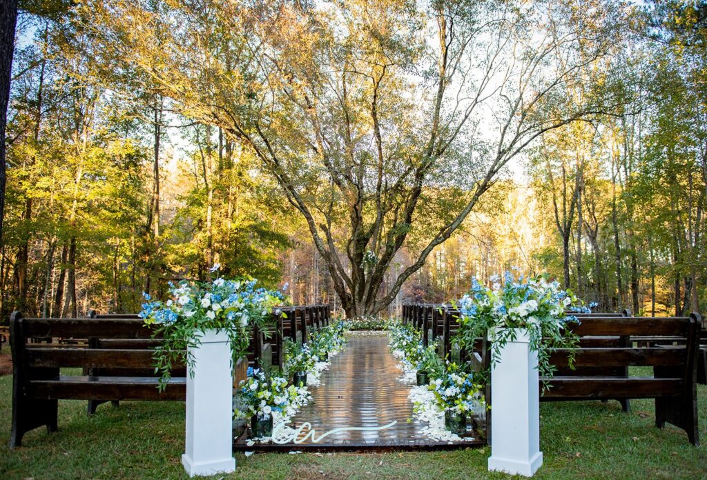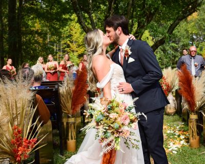 From weddings, to bridal showers to milestone birthday parties, Chande Pines is a venue that can accommodate a variety of different events and themes. Our property has a meadow with a waterfront view, lush pine tree forests, and a 6,000 square foot cement landing, 3,200 of which is covered by a unique pole barn filled with chandeliers and dark wood elements. We have a smaller covered pavilion called “Baby Chande” that is 800 sqft. and perfect for smaller events or can be used for dinner buffets, additional seating, yard games and more. In 2020, we added a gorgeous metal bridge that offers a unique, one-of-a-kind photo opportunity for our guests.