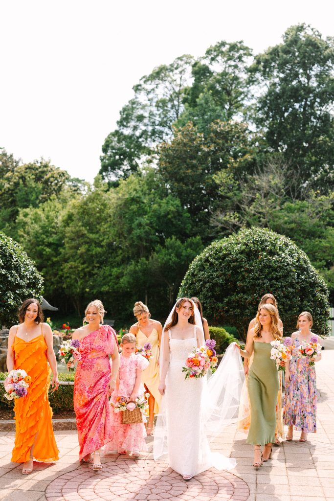 Bridesmaid dress ideas abound right here!  Browse hundreds of bridal party photos from real weddings featured on Atlanta Style Weddings ranging from glamorous floor length bridesmaid gowns, to casual knee-length bridal party looks.  We say go with whatever matches the style of your wedding and makes your bridesmaids feel comfortable.