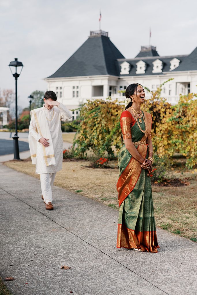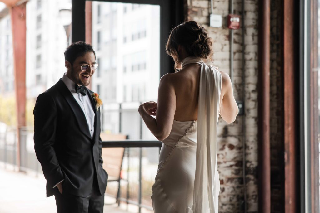 A wedding day first look might be the most magical moment to capture on photos. Often replacing the first look down the aisle, this new tradition cherished by modern couples and wedding photographers alike is a private time before the wedding ceremony where the couple gets to get all the jitters out and see their love for the first time on the day of the wedding. See how other couples carried out their first look in these real weddings featured by Atlanta Style Weddings below.