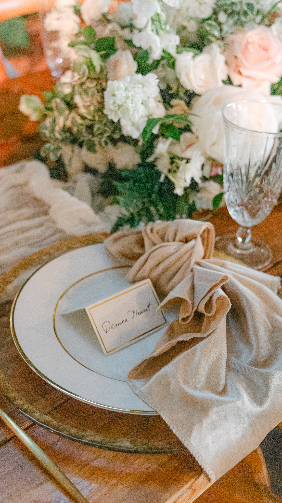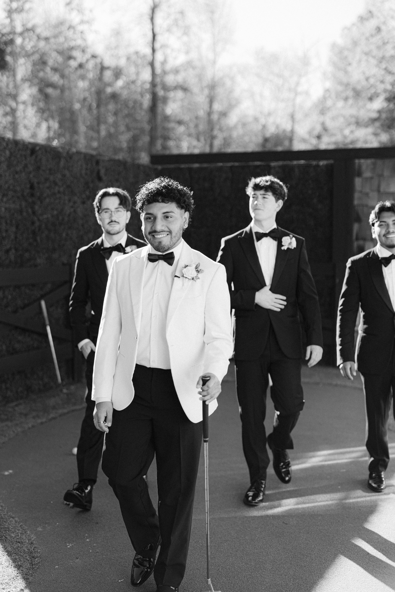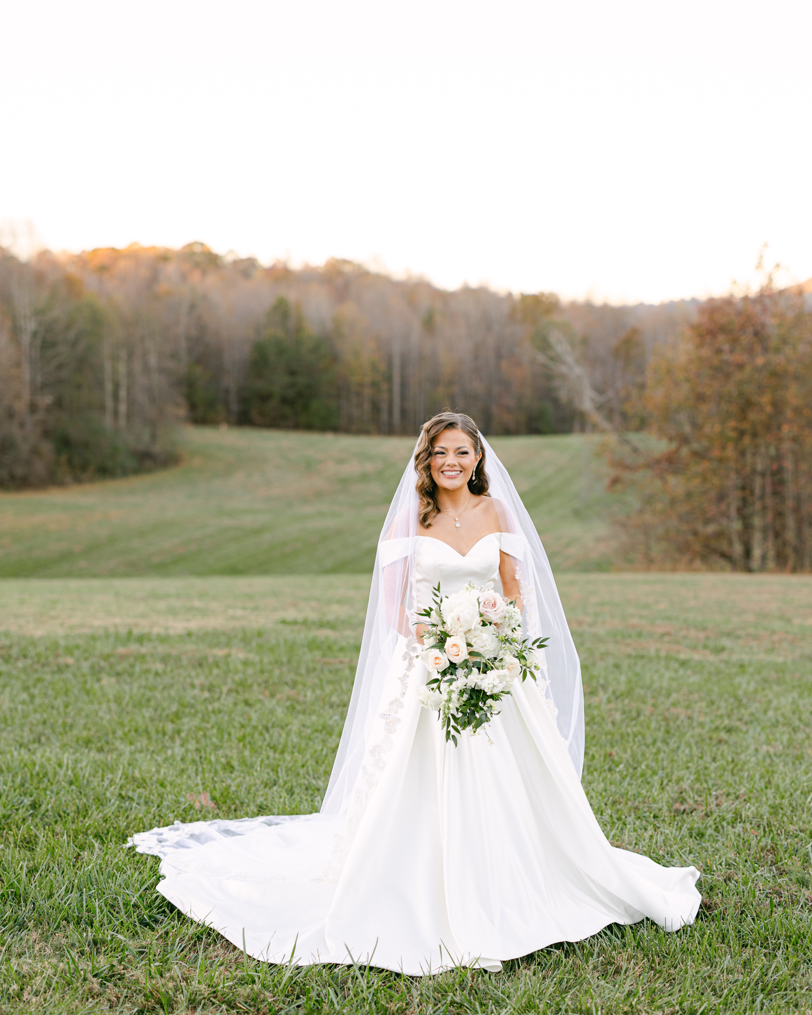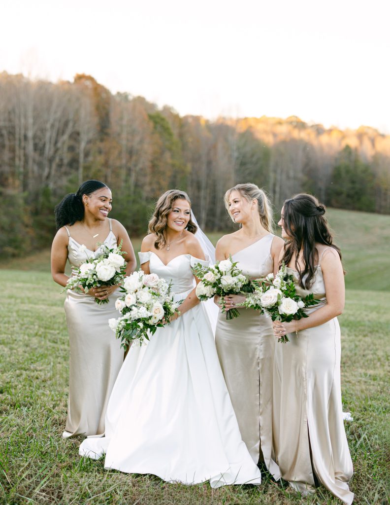 Allison and Erik’s celebration took place at The Meadows at Mossy Creek, perched atop North Georgia’s beautiful mountainscape. The couple’s ceremony took place beneath a sweeping floral arch by Flux Floral Design, surrounded by 300 guests dressed in classic black. Overlooking the same mountain range where they had spent many afternoons hiking and talking about their future, Allison and Erik exchanged vows in a heartfelt and faith-driven ceremony.