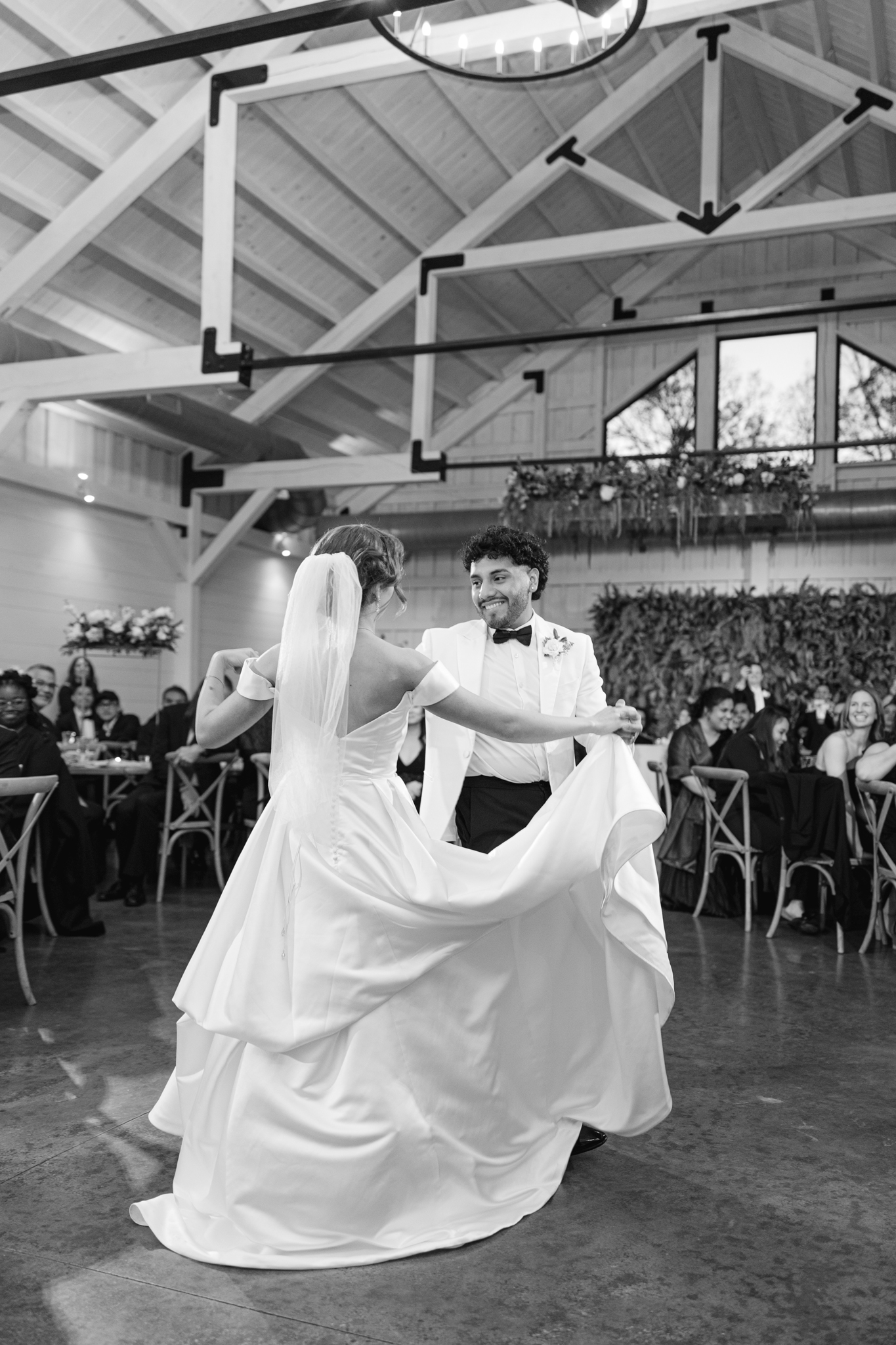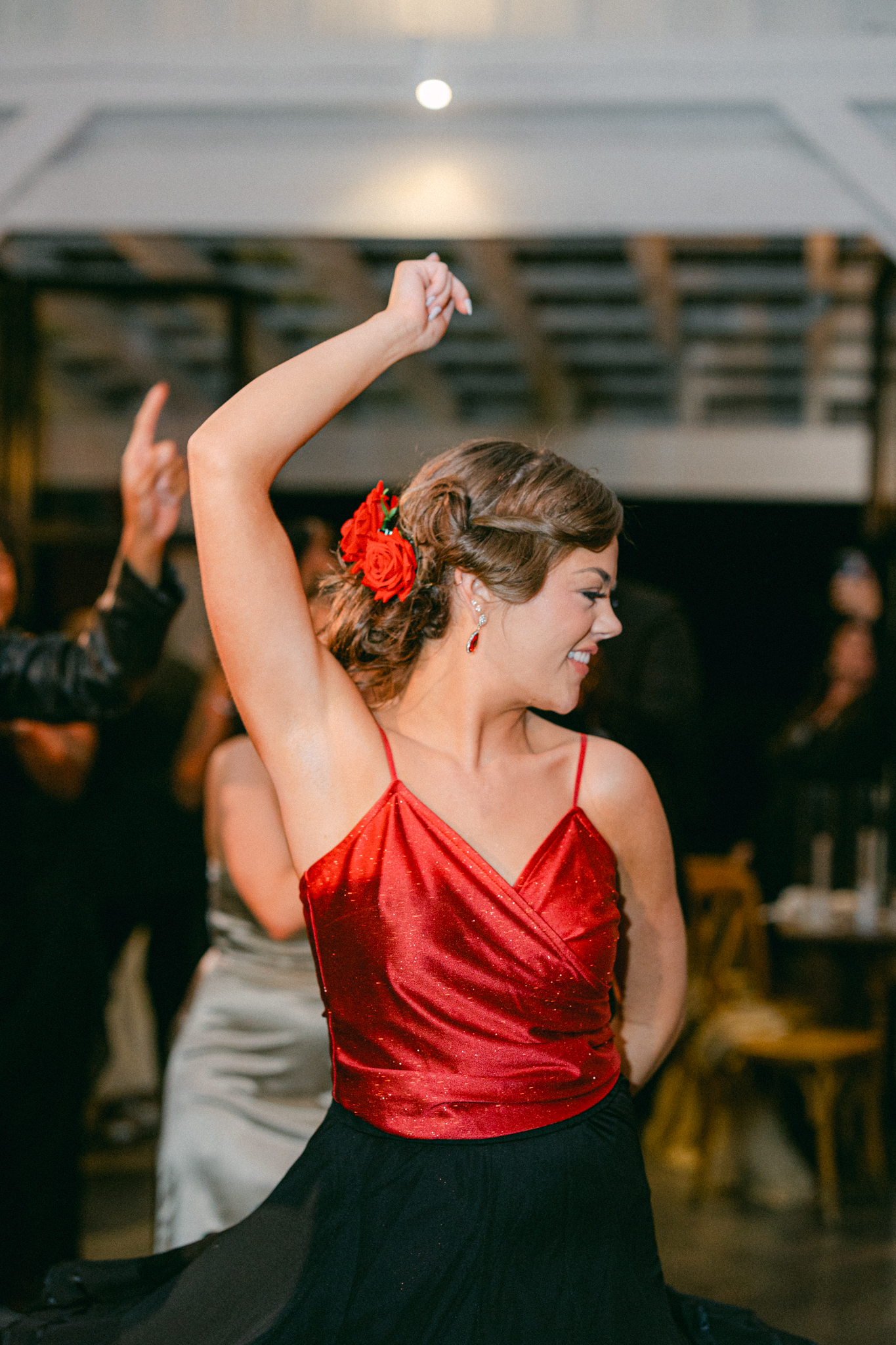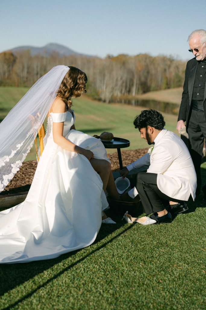 The reception continued inside Meadows at Mossy Creek’s modern-rustic venue, with floor-to-ceiling windows framing the mountain views. One highlight came when the couple took the floor for a choreographed salsa, a nod to Erik’s Mexican heritage. And the party certainly didn’t stop there, as guests also enjoyed live painting by Lindsey Ridgeway Art and music from DJ Chris Fuller, who kept the energy going late into the night.