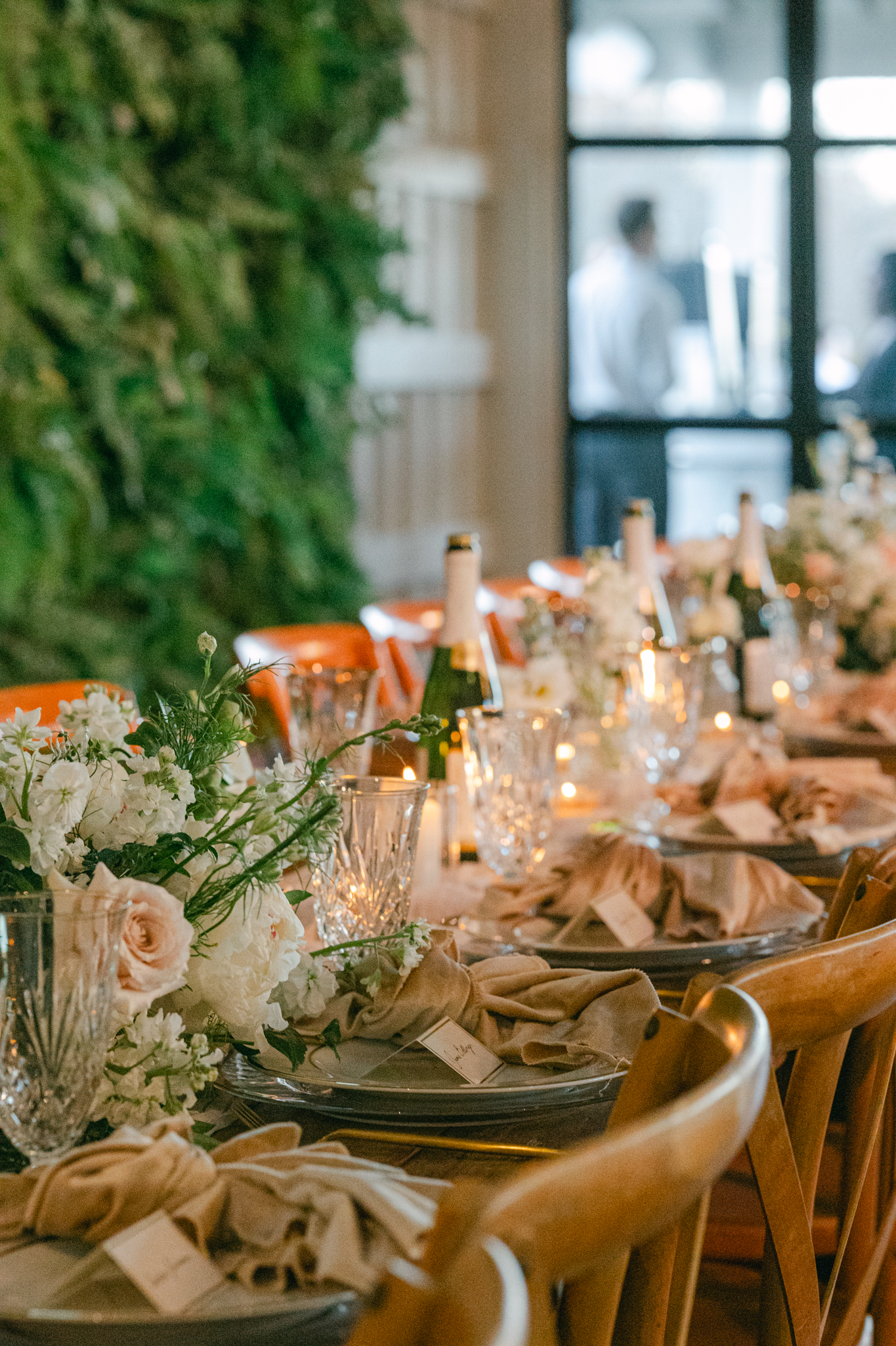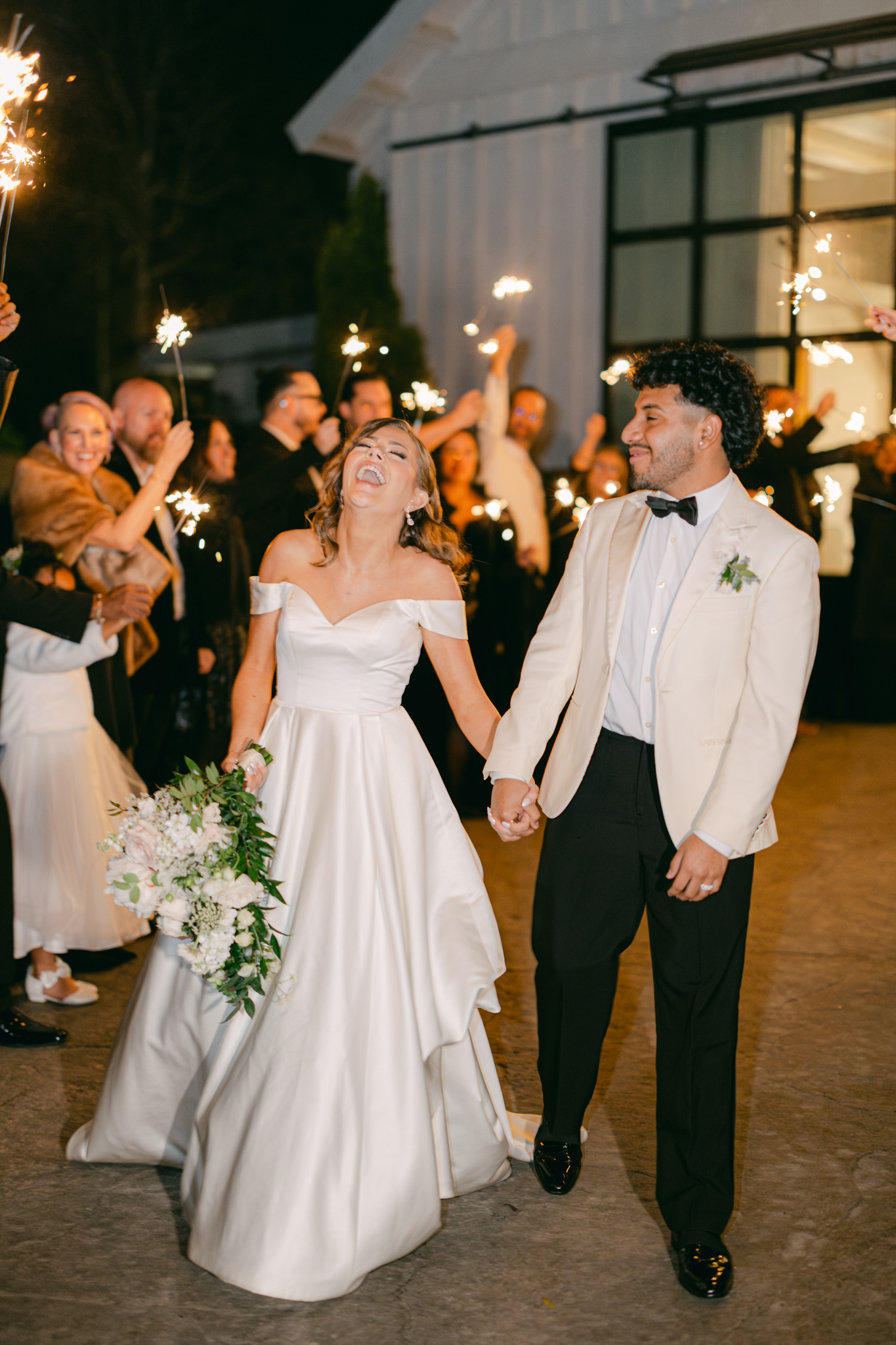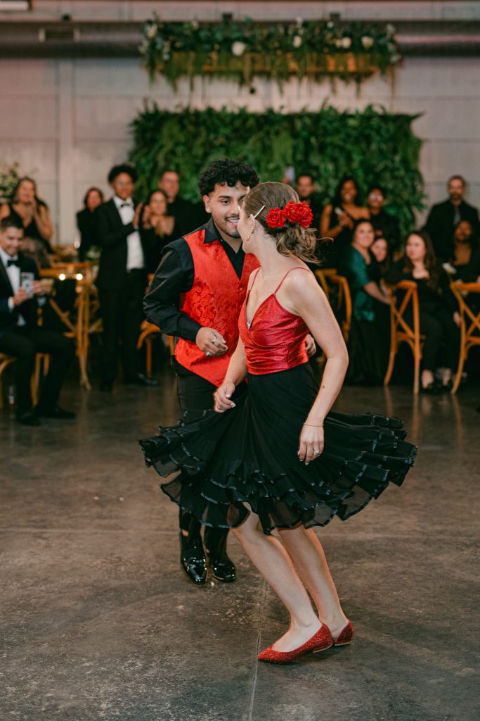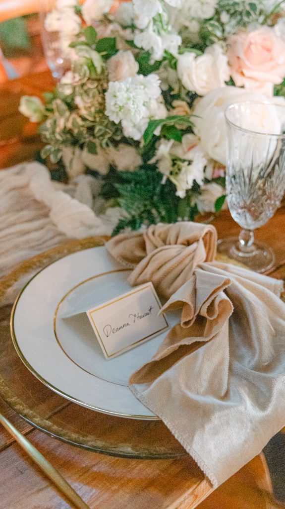 The reception continued inside Meadows at Mossy Creek’s modern-rustic venue, with floor-to-ceiling windows framing the mountain views. One highlight came when the couple took the floor for a choreographed salsa, a nod to Erik’s Mexican heritage. And the party certainly didn’t stop there, as guests also enjoyed live painting by Lindsey Ridgeway Art and music from DJ Chris Fuller, who kept the energy going late into the night.