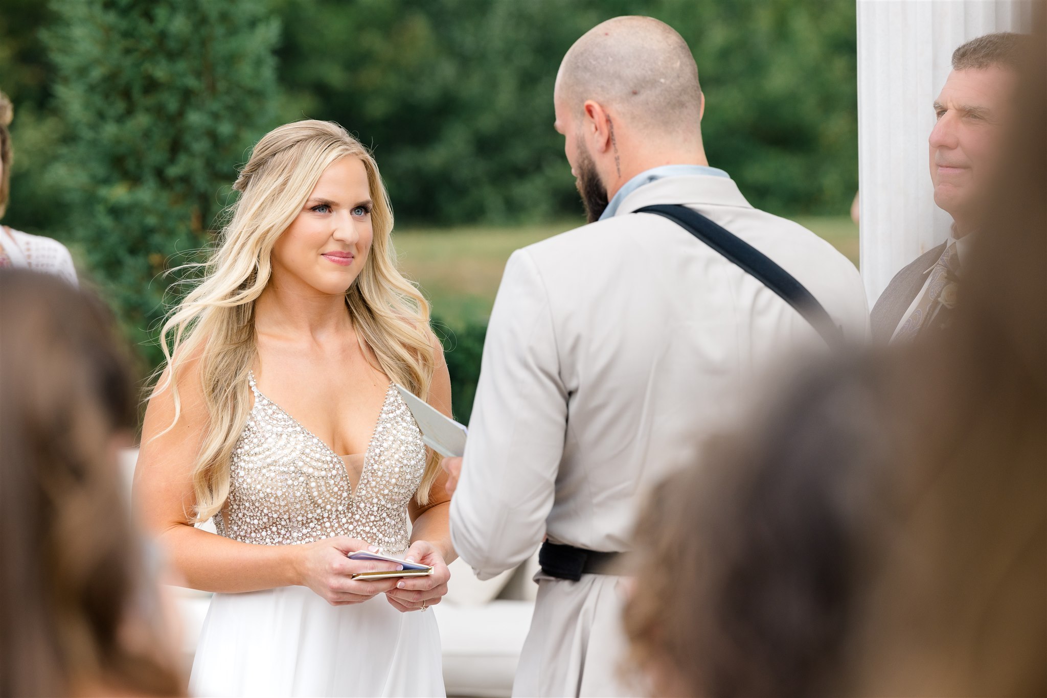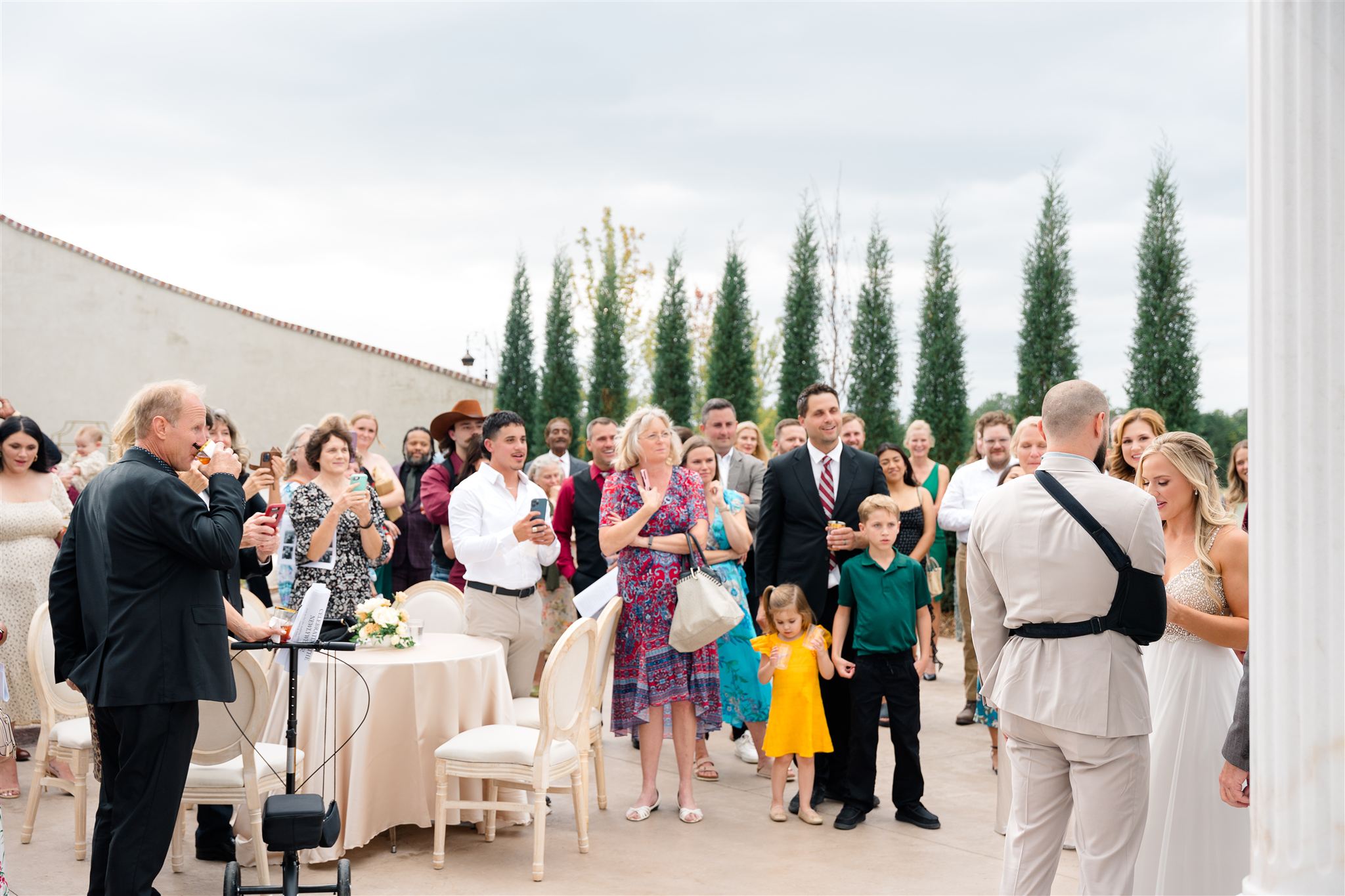 Abbie and Talor welcomed their guests with a unique pre-ceremony cocktail hour. Instead of a traditional processional, friends and family gathered around the couple as they exchanged vows beneath the garden Ceremony Dome. Guests leaned in close to catch each word, creating an atmosphere that felt both intimate and memorable.