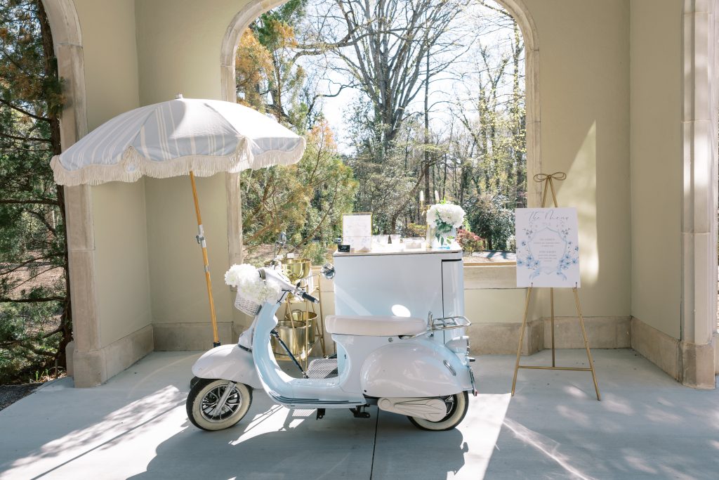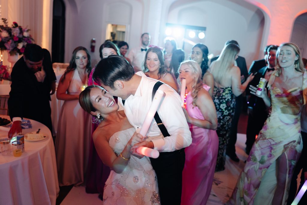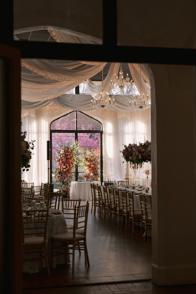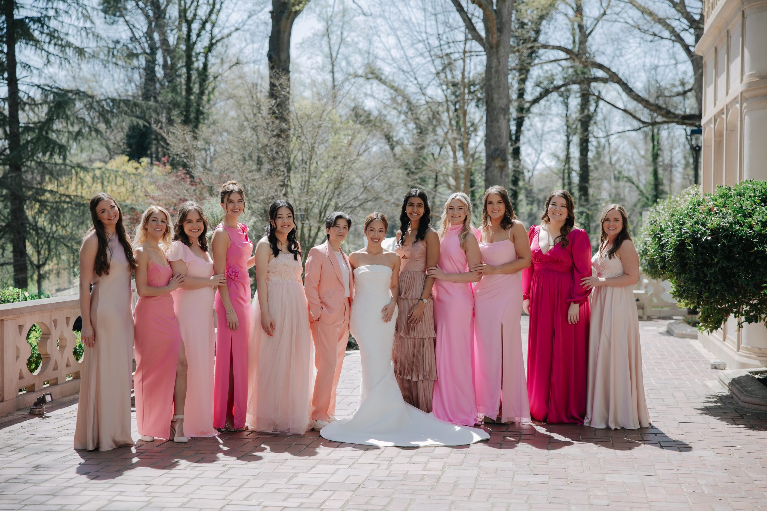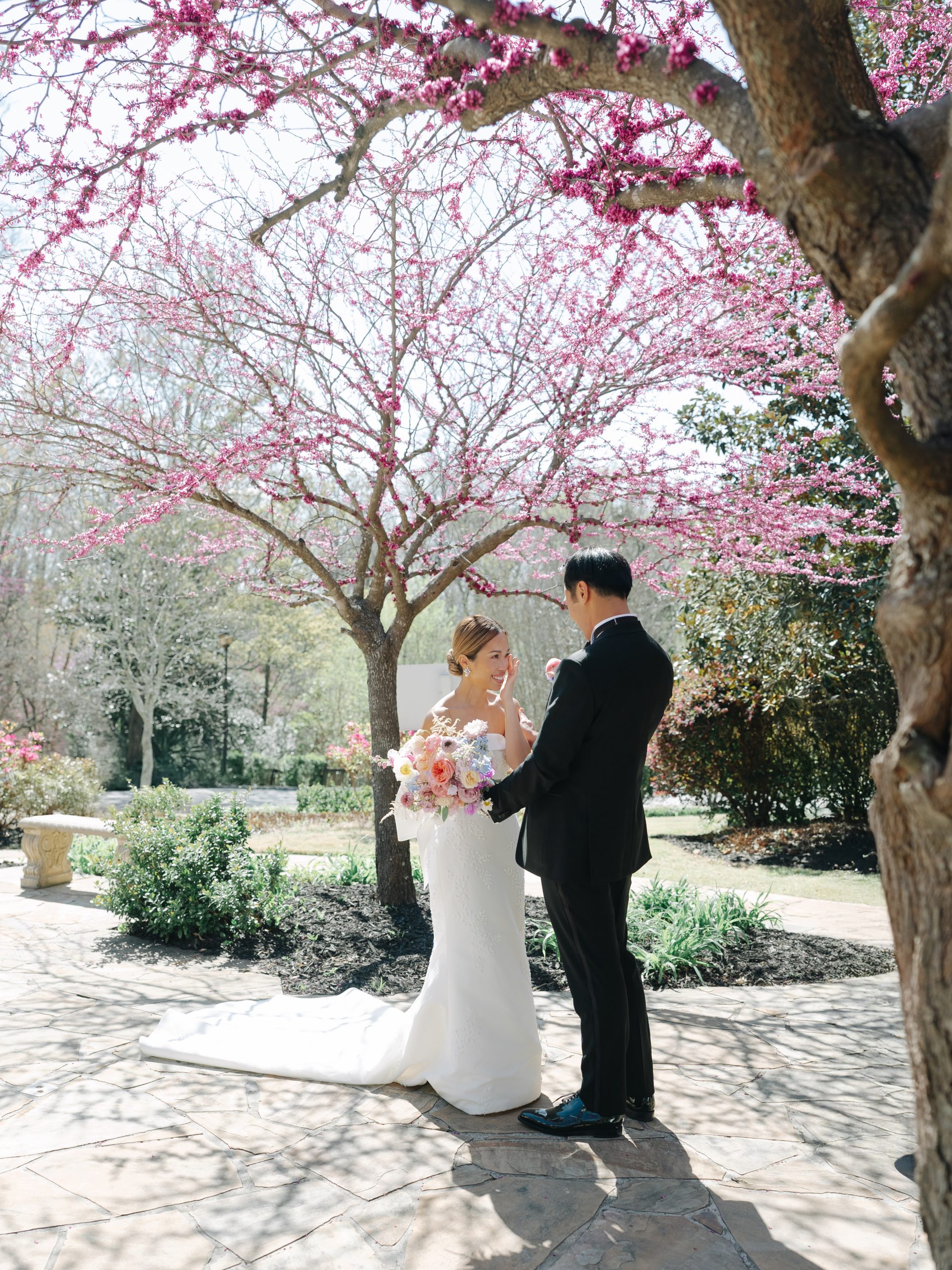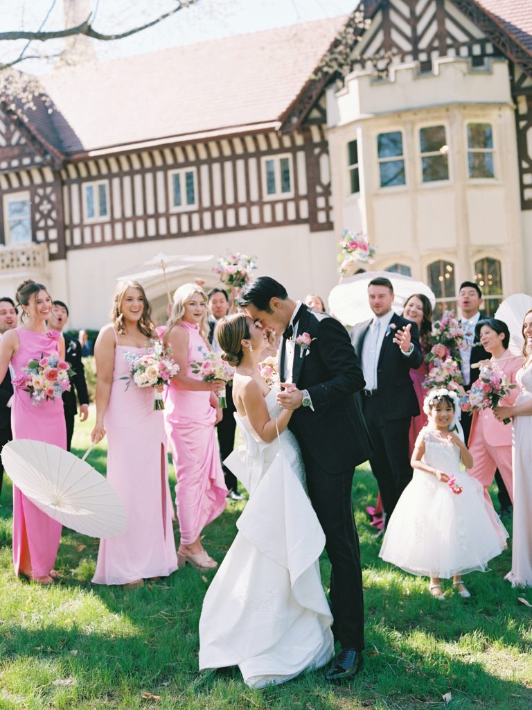 While the couple initially dreamed of a destination wedding in Europe, the realities of surgical residency made planning abroad unrealistic. When they discovered Callanwolde Fine Arts Center through their planner, it felt like the perfect alternative: a European escape right in the heart of Atlanta. Its historic architecture, manicured gardens and old-world details set the tone, while soft spring florals and painterly pastel hues brought the garden-party vision to life. Pink and blush blooms, airy textures and romantic tablescapes added warmth to the classic space. But beyond aesthetics, the venue’s flexibility for outside catering also allowed Amanda and Thieu to honor what mattered most by incorporating the Asian cuisine that was essential to their celebration.
