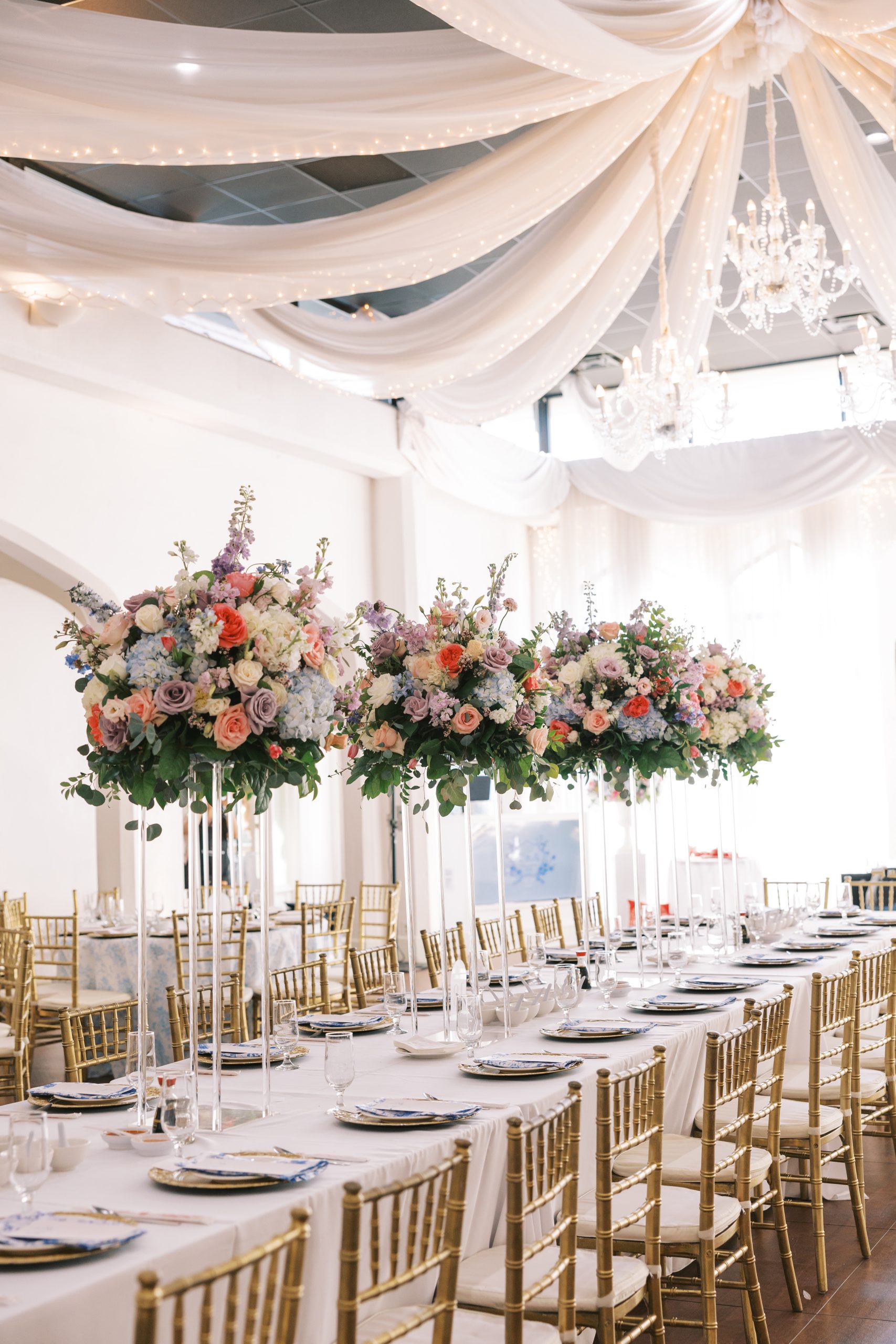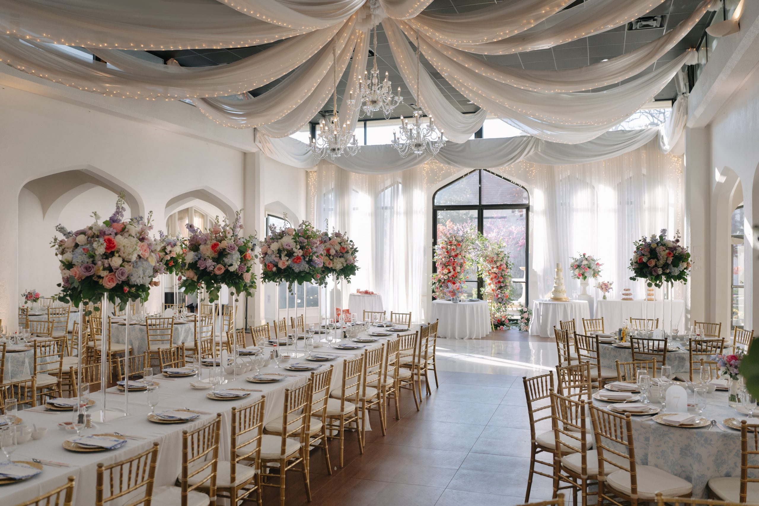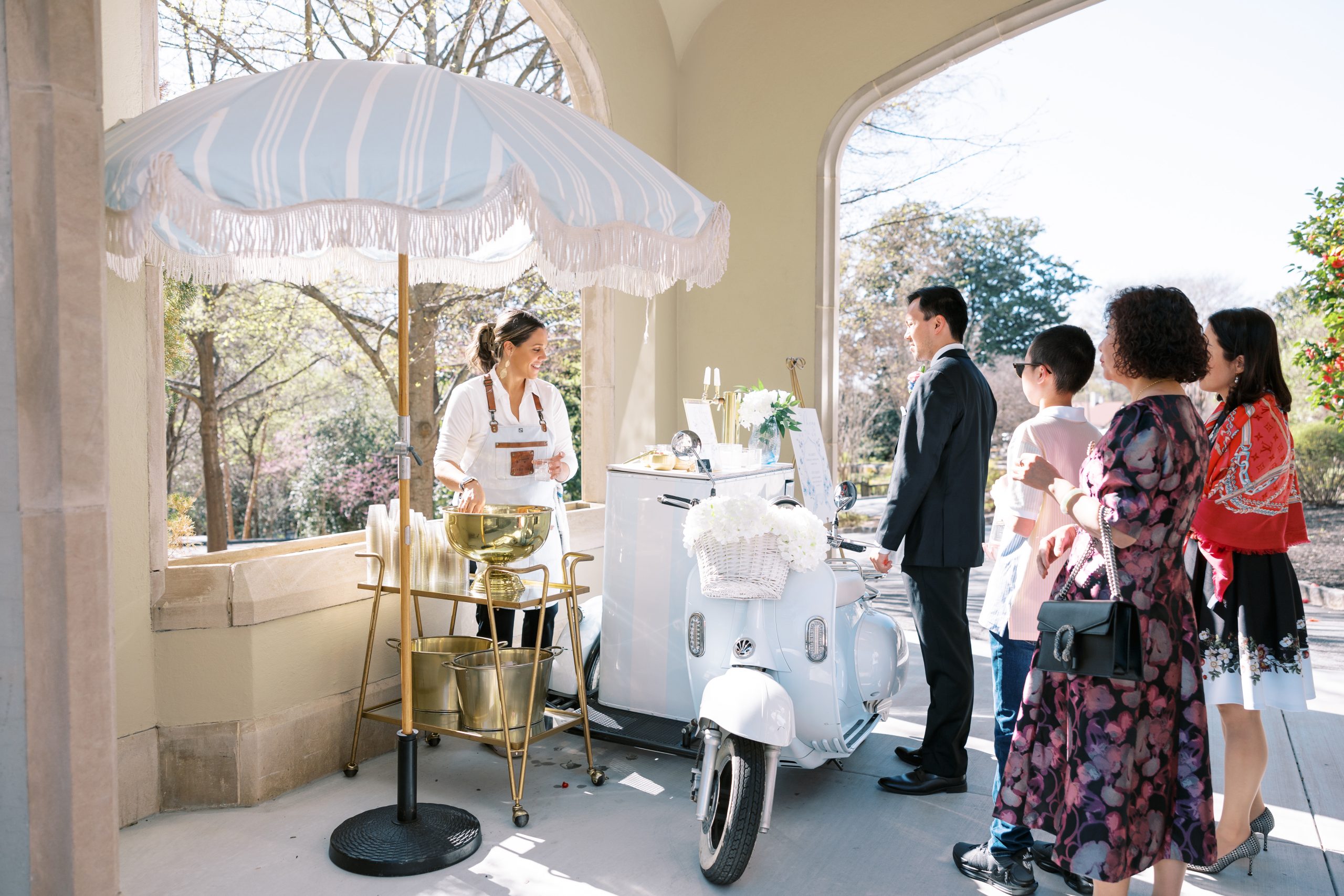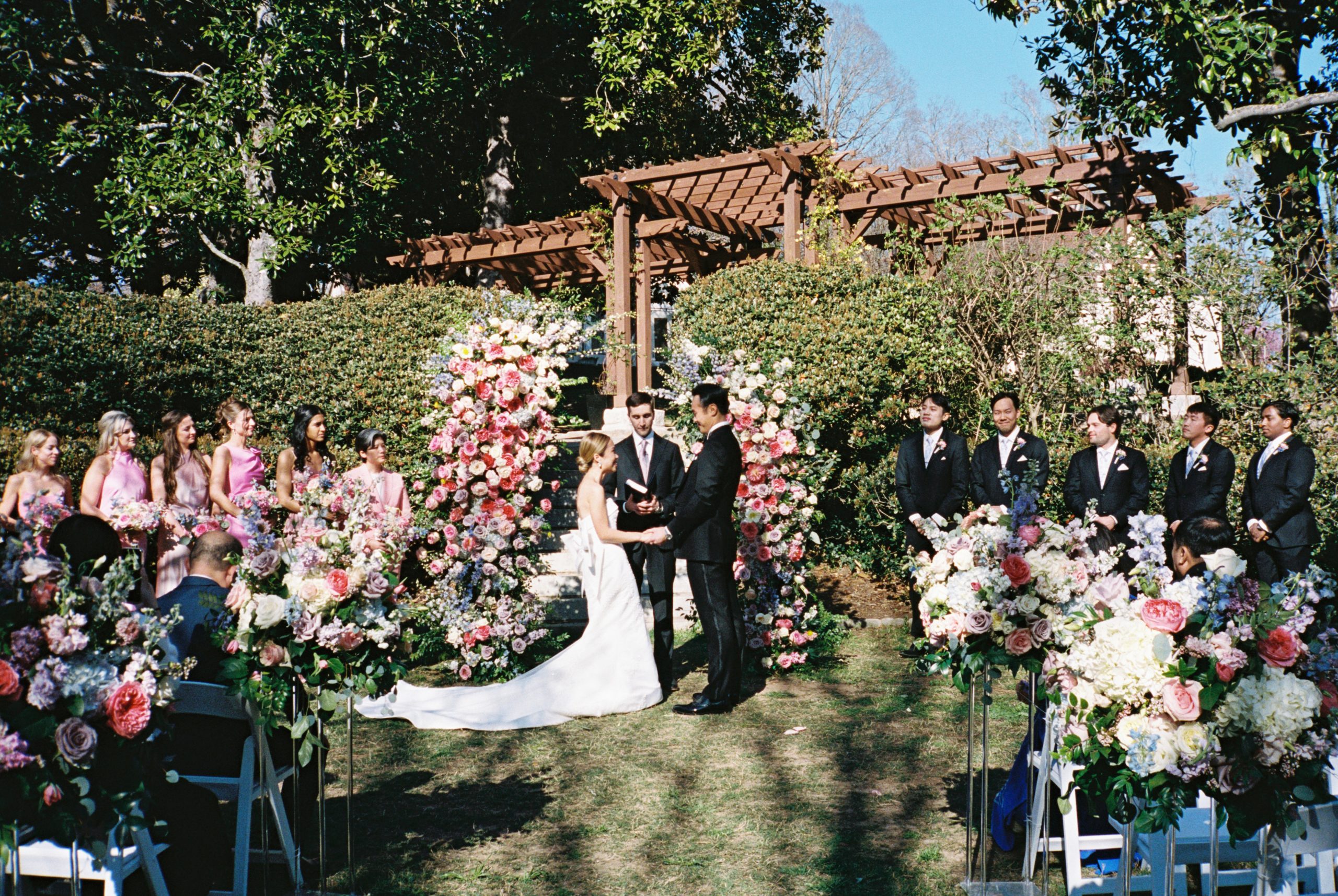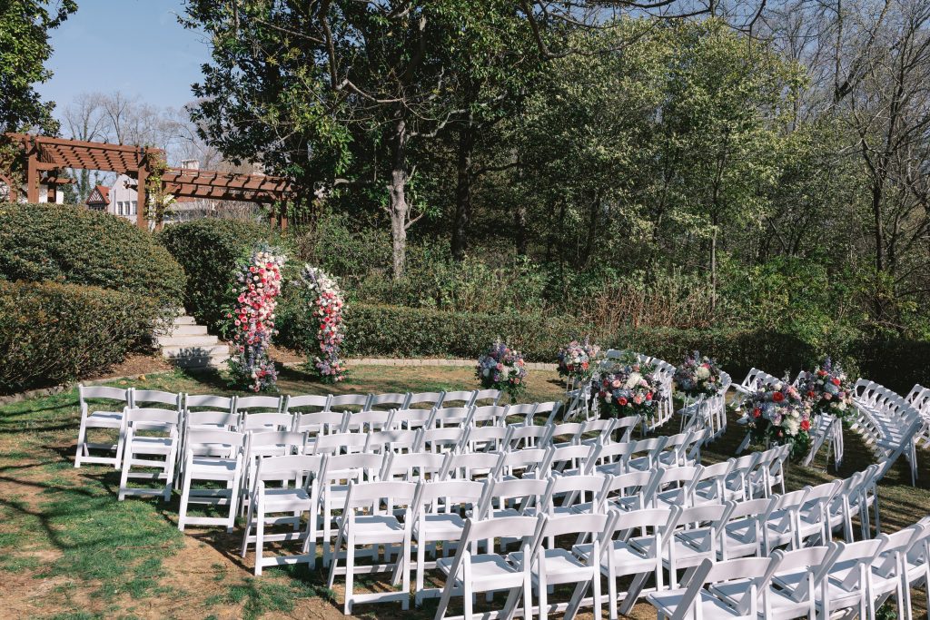 While the couple initially dreamed of a destination wedding in Europe, the realities of surgical residency made planning abroad unrealistic. When they discovered Callanwolde Fine Arts Center through their planner, it felt like the perfect alternative: a European escape right in the heart of Atlanta. Its historic architecture, manicured gardens and old-world details set the tone, while soft spring florals and painterly pastel hues brought the garden-party vision to life. Pink and blush blooms, airy textures and romantic tablescapes added warmth to the classic space. But beyond aesthetics, the venue’s flexibility for outside catering also allowed Amanda and Thieu to honor what mattered most by incorporating the Asian cuisine that was essential to their celebration.