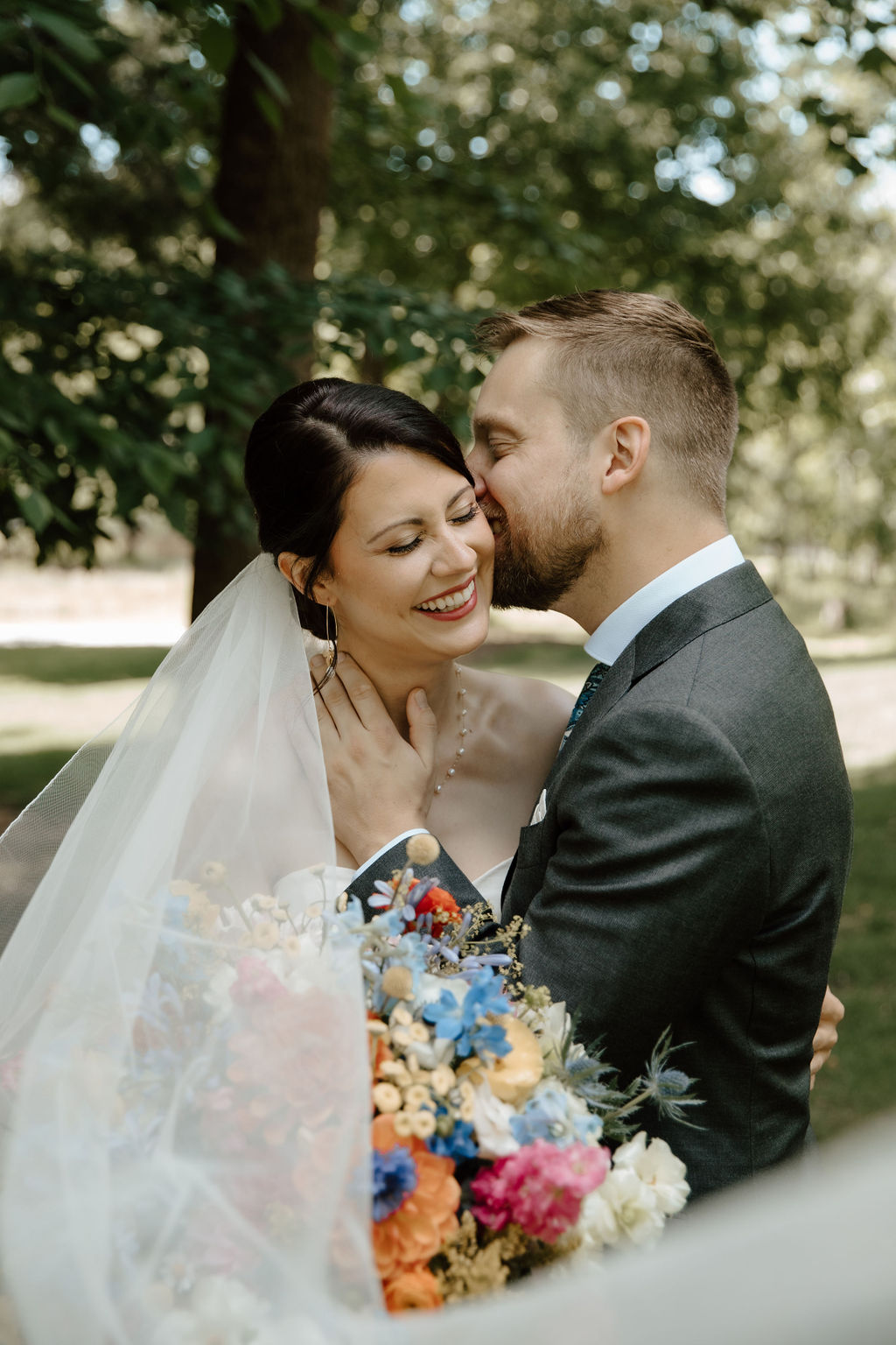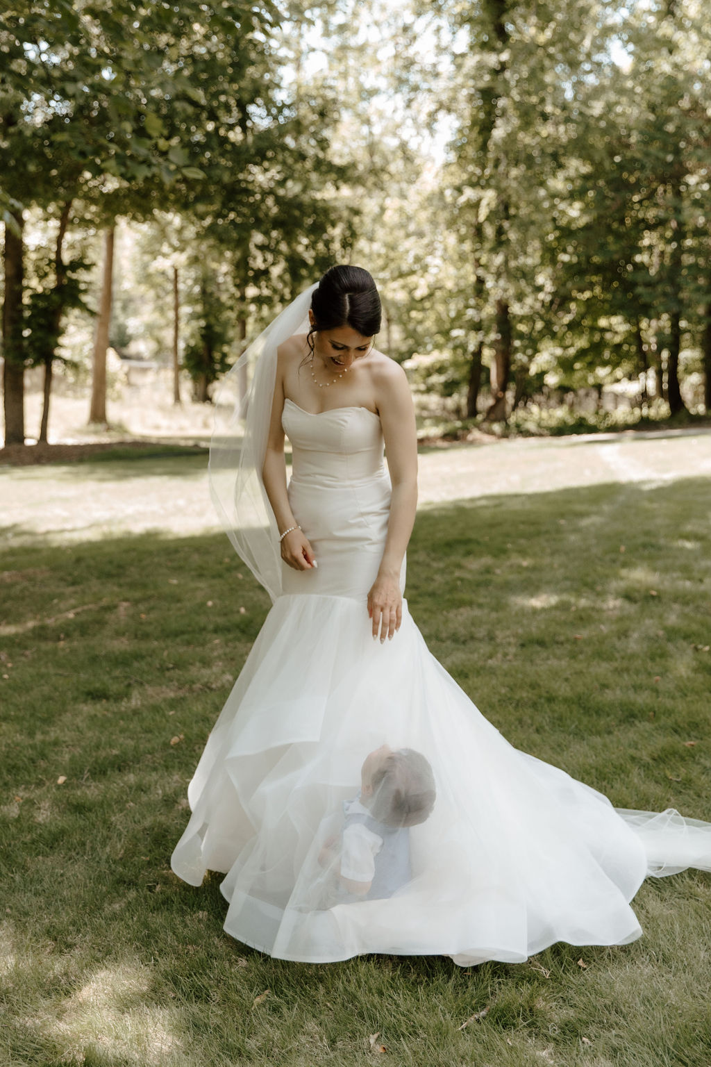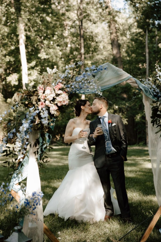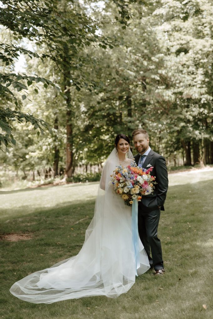 In 2020, however, their carefully planned wedding was canceled due to the pandemic. Instead, Autumn and David chose a safe, intimate elopement. Even then, they knew they still wanted to gather family and friends for the bigger celebration they had always imagined. Four years, a move to Colorado, career changes and a beautiful baby boy later, the time was finally right. On their original wedding date, they exchanged vows again — this time in the groom’s family’s backyard, just steps away from where they had legally wed.