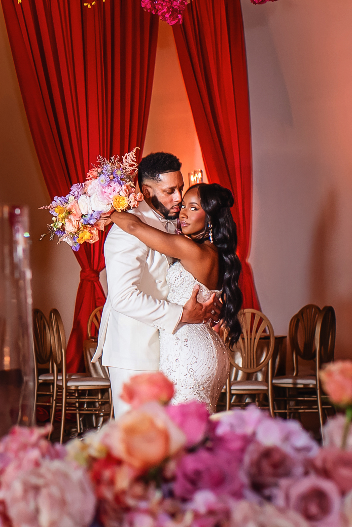 From the moment guests stepped inside 42West, it was clear this was no ordinary wedding. Full of faith and romance, Lawanda and As-Samad’s “Bloom in Love” themed celebration unfolded like a living fairytale.