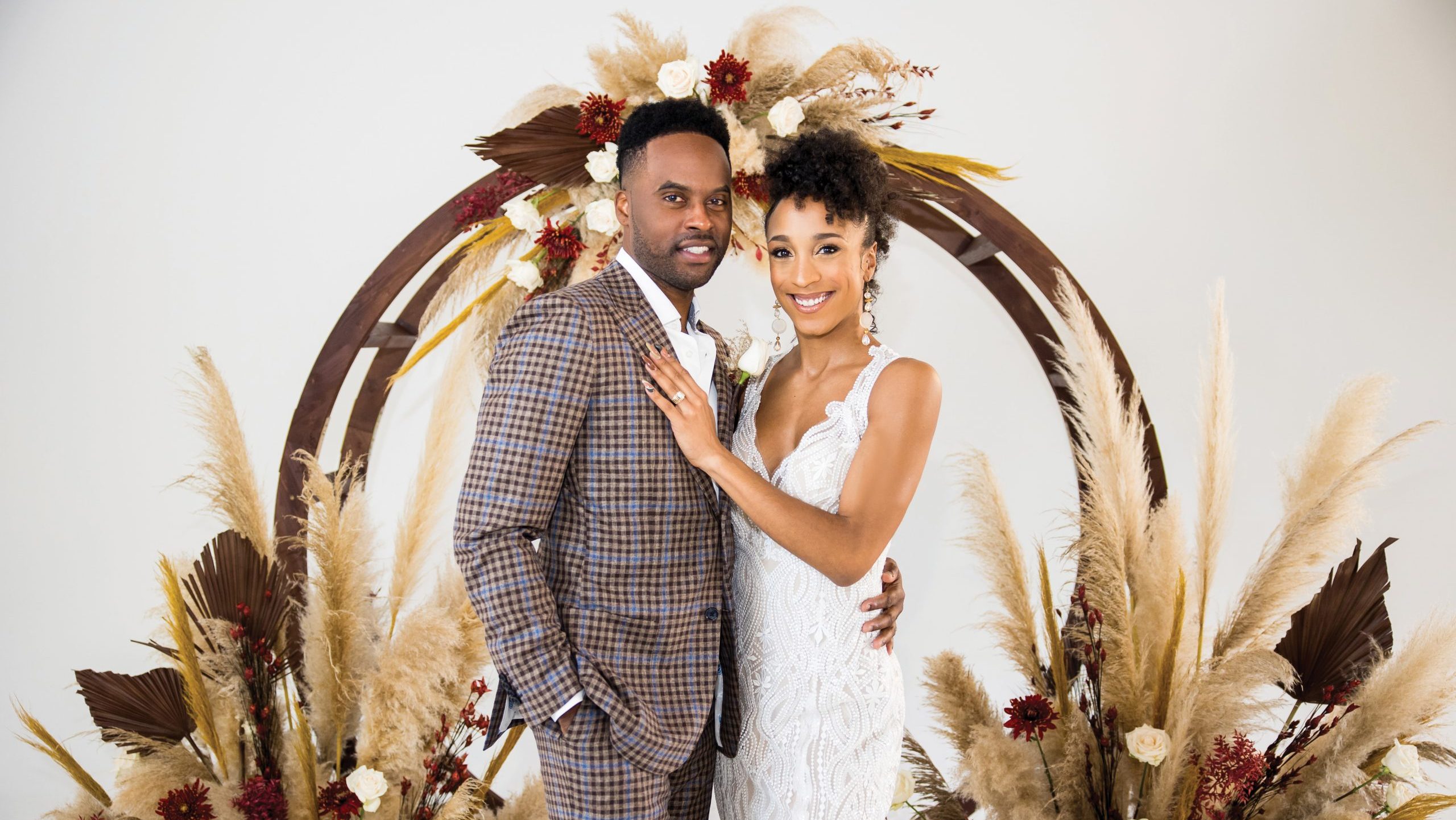 “This intimate ‘Boho Chic meets Tuscany’ theme was inspired by my love of fall colors and pampas grass. We incorporated warm hues of oatmeal, cinnamon, amber and bordeaux into the tablescape, stationery, florals and attire. It’s an autumn mix of chic/glam southern charm with a definite bohemian style.”