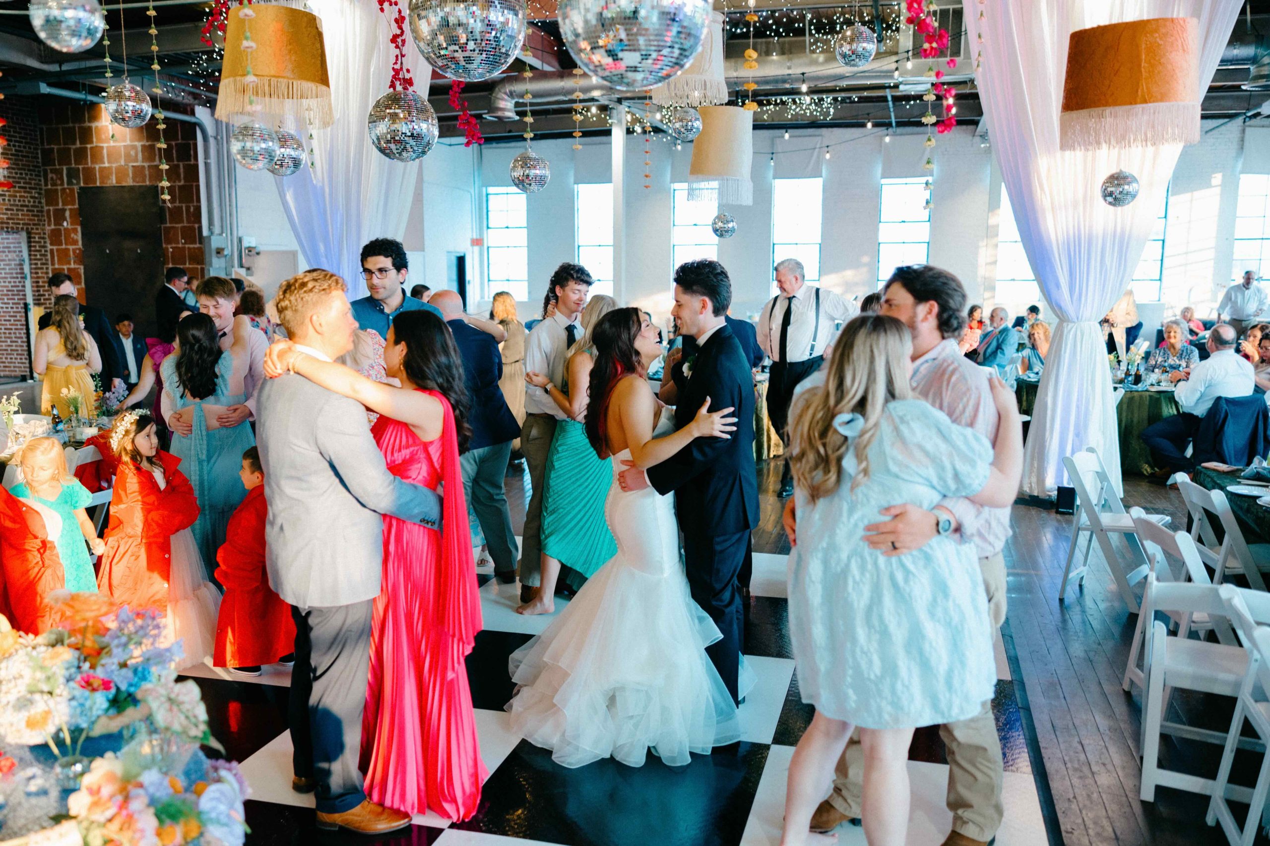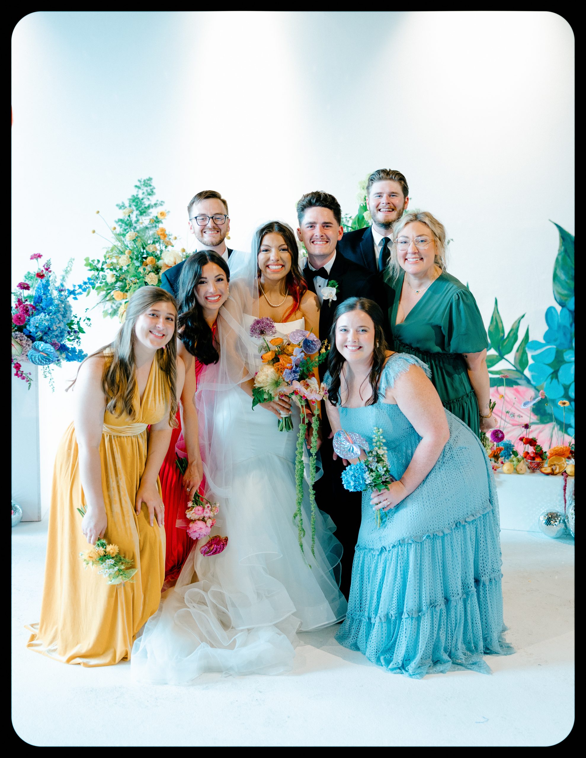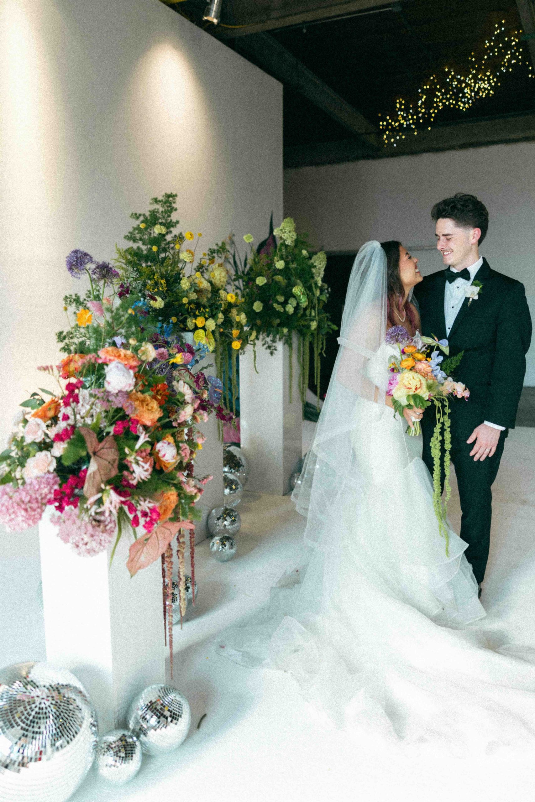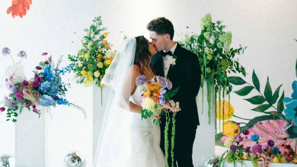 A full-color summer disco pulsing with personality, Camaryn and Levi’s June wedding transformed Ambient Plus Studio into a vivid art installation.