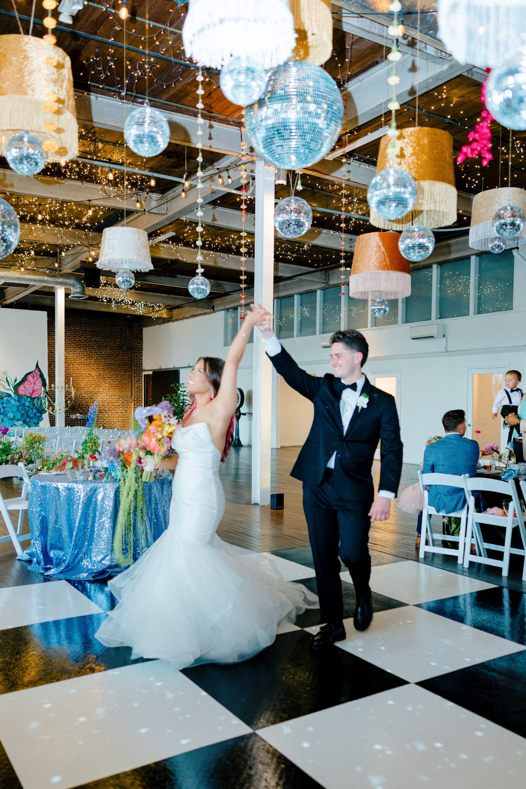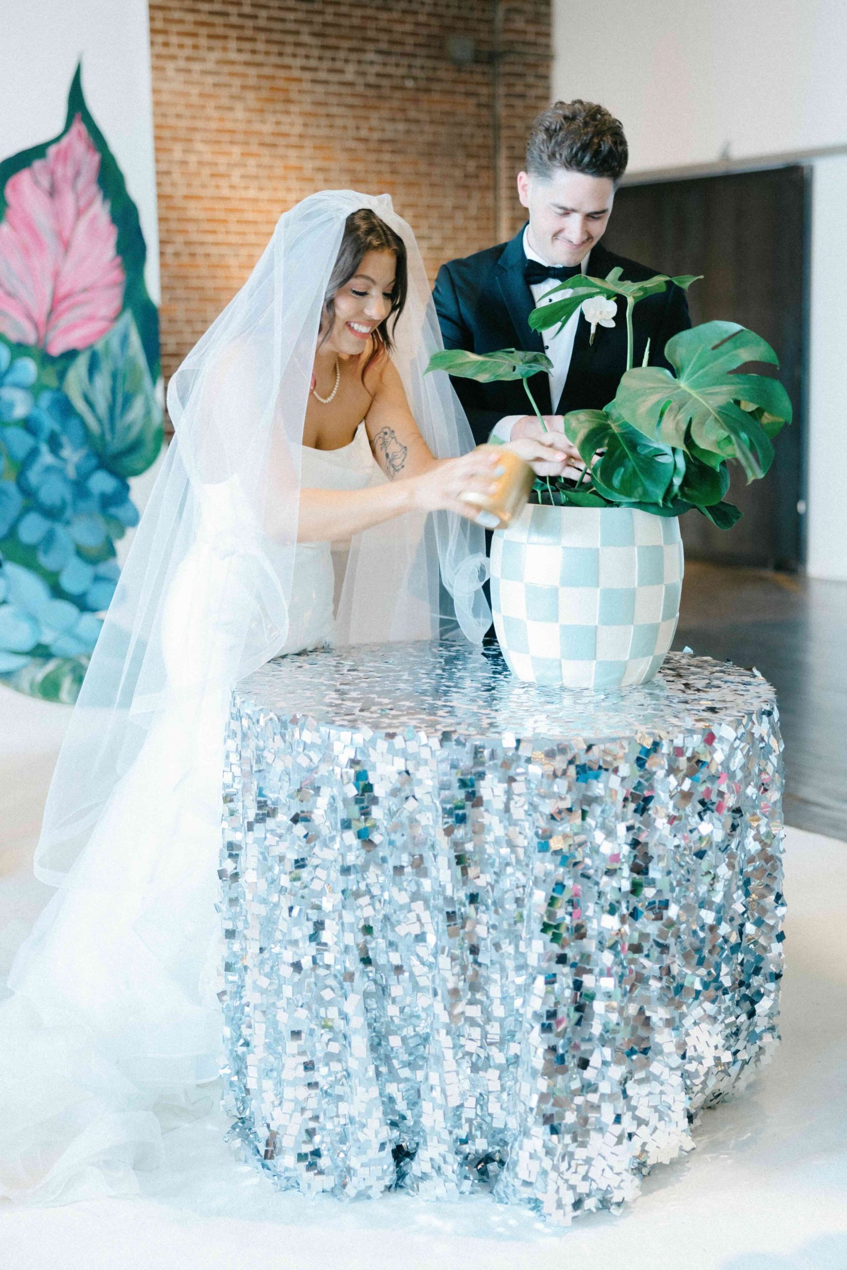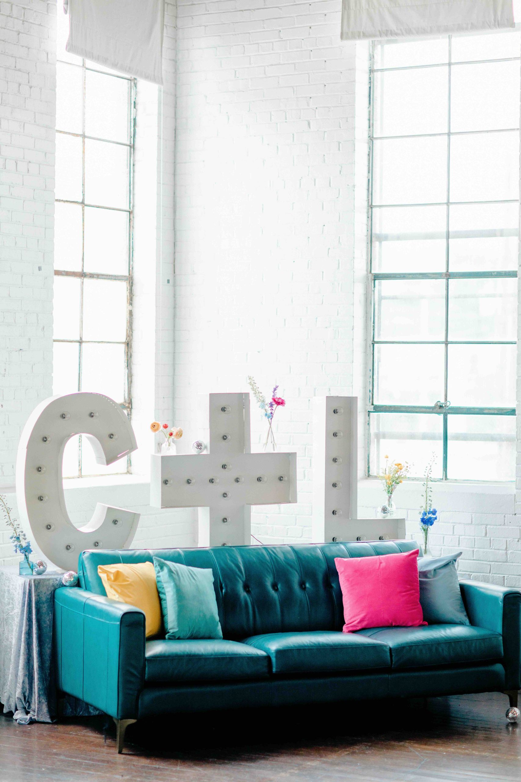 A full-color summer disco pulsing with personality, Camaryn and Levi’s June wedding transformed Ambient Plus Studio into a vivid art installation.