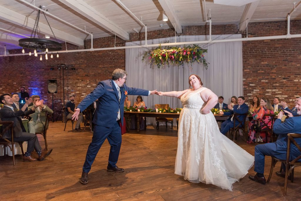 A quick Google search for “wedding venues that aren’t barns” led Chelsea and Jacob to The Factory at Walton Mill. The moment they stepped inside, they knew it was the one. The venue offered great aesthetic vibes, but its all-inclusive offerings and trusted vendor partners sealed the deal. “It was so easy to work with any outside vendors, but the vendors that The Factory provided and recommended were truly top-notch,” the couple shared. “Every detail in the planning was so thoughtful and intentional. The floral design alone was enough of a reason to book this venue!”