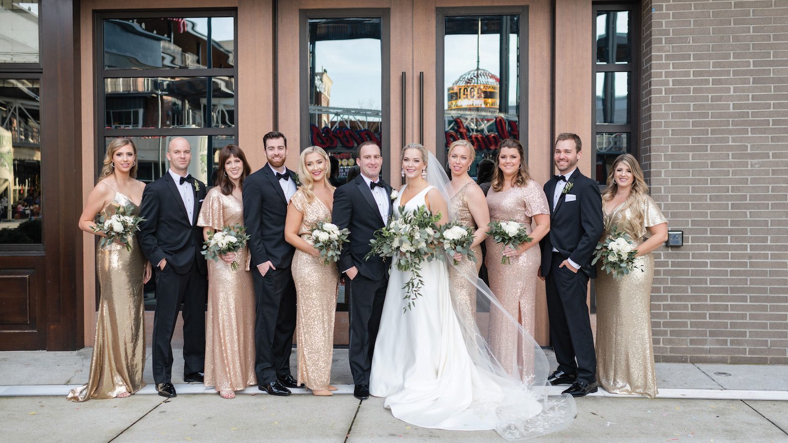 The COVID-19 pandemic forced the couple to pivot their initial plans a few times, including the decision to have a more intimate guest list of close friends and family. Their wedding fell on the New Year’s holiday weekend, so they planned a late-night wedding for a party-like atmosphere. Everyone gathered at the Cathedral of Christ the King for the ceremony before going to the reception at The Little Cottage in Smyrna. Instead of a traditional sit-down dinner, heavy hors d’oeuvres and cocktails were served.