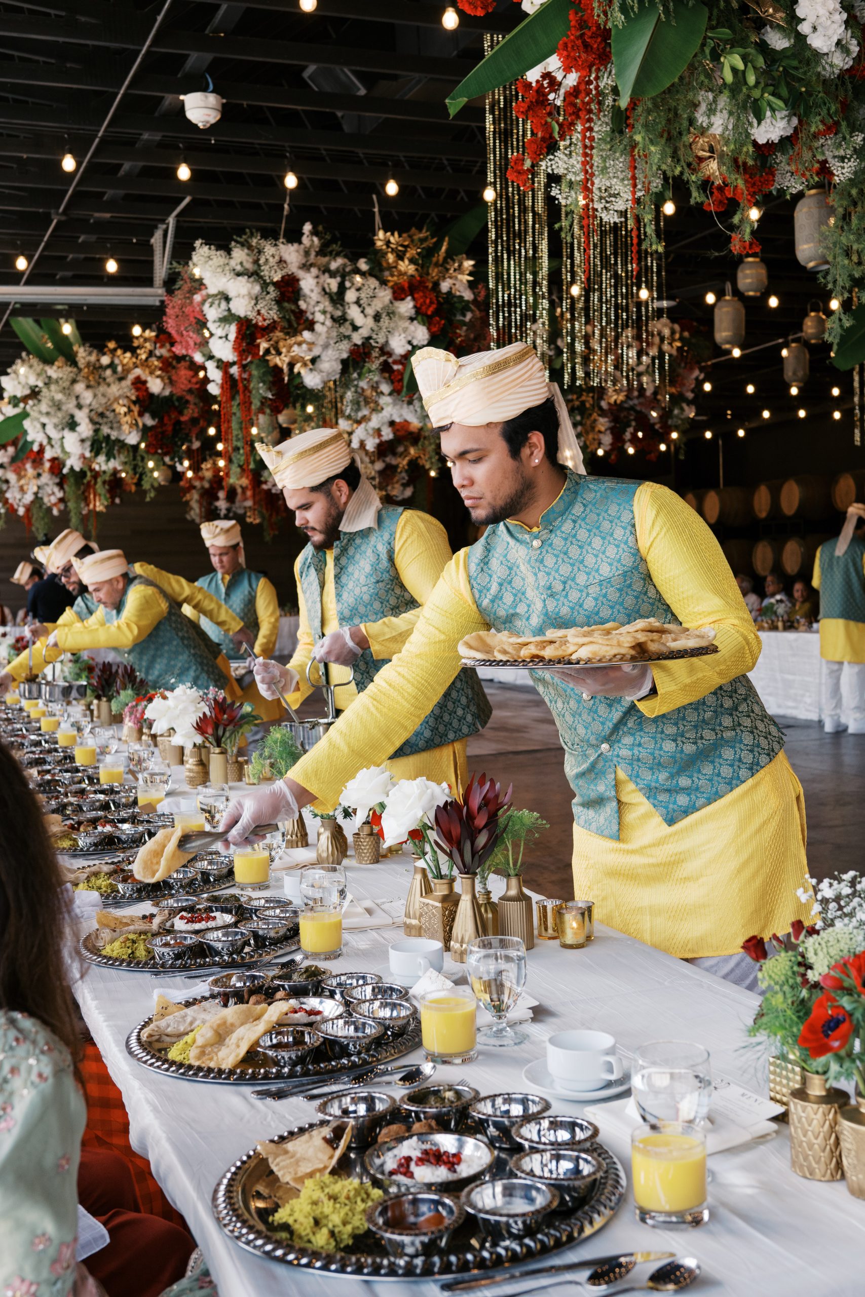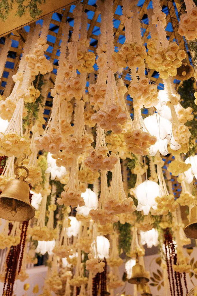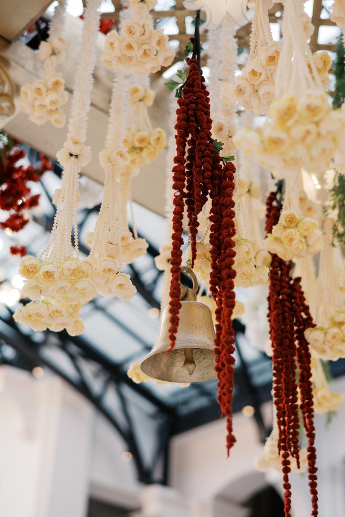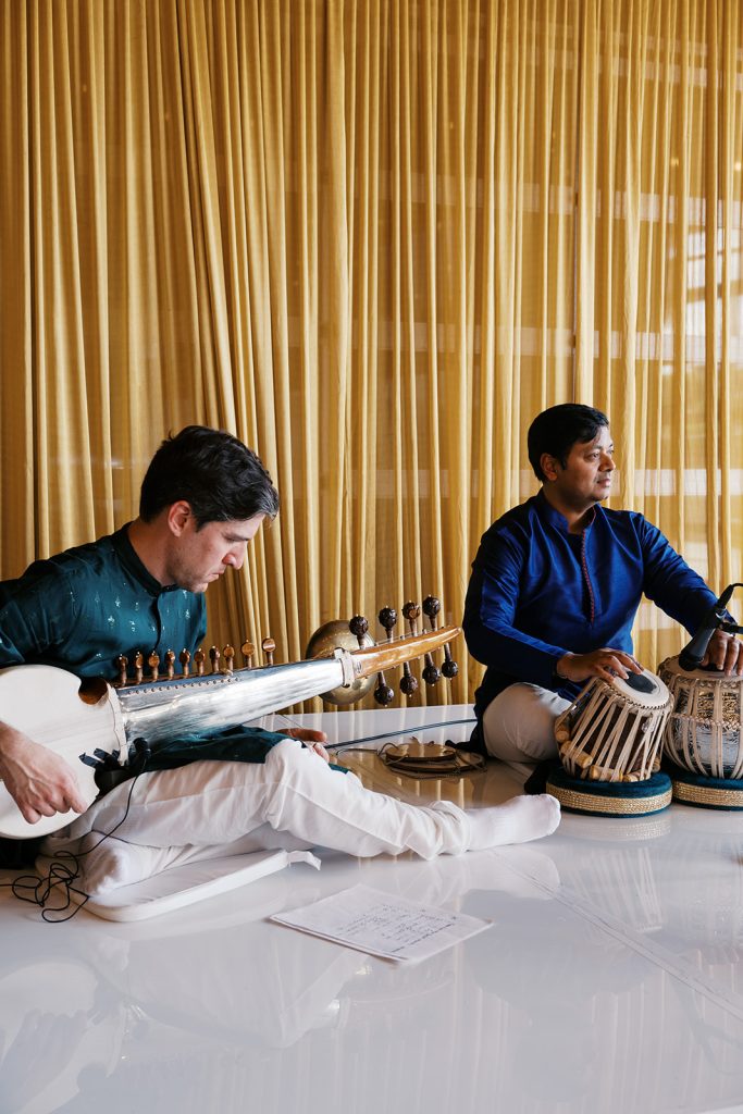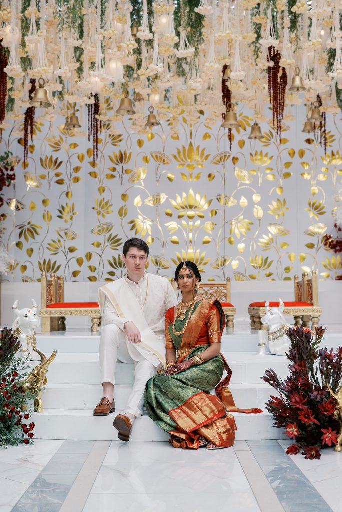 After the morning ceremony, guests gathered for a thali lunch, with golden platters filled with South Indian favorites: Avial, lemon rice, and sweet payasam. Live sitar music floated through the room while friends and family soaked up the moving Hindu ceremony they just witnessed. Sacred and joyful, Deepa and Tom’s celebration offered a rare pause from fast, Excel-filled days — a moment for two Manhattan finance professionals to honor not only their union, but the cultures that shaped them.