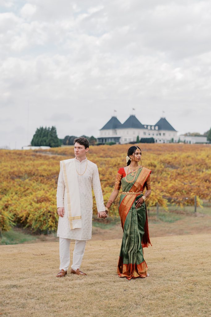 When it came to choosing a wedding location, Château Élan made for the ideal venue. Deepa spent her childhood in Northern California, surrounded by rolling vineyards and golden light, but her parents now call Atlanta home. Château Élan’s elegant winery setting bridged both worlds — evoking the landscapes of her upbringing while welcoming guests with the warmth of the South. Its blend of rustic charm and refined luxury created the perfect setting for a celebration built around the joining of cultures.
