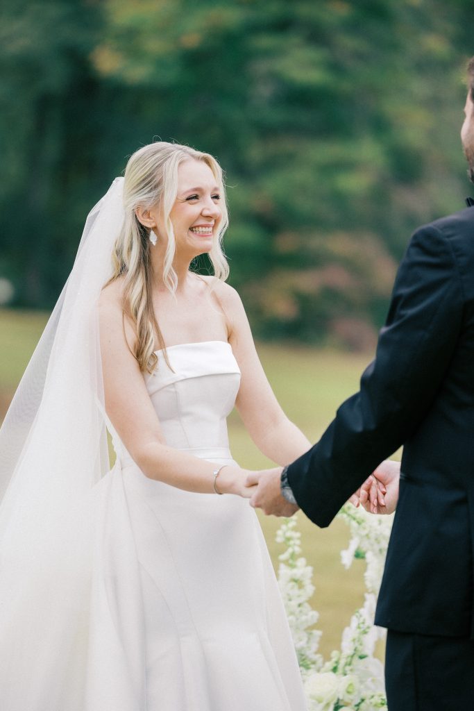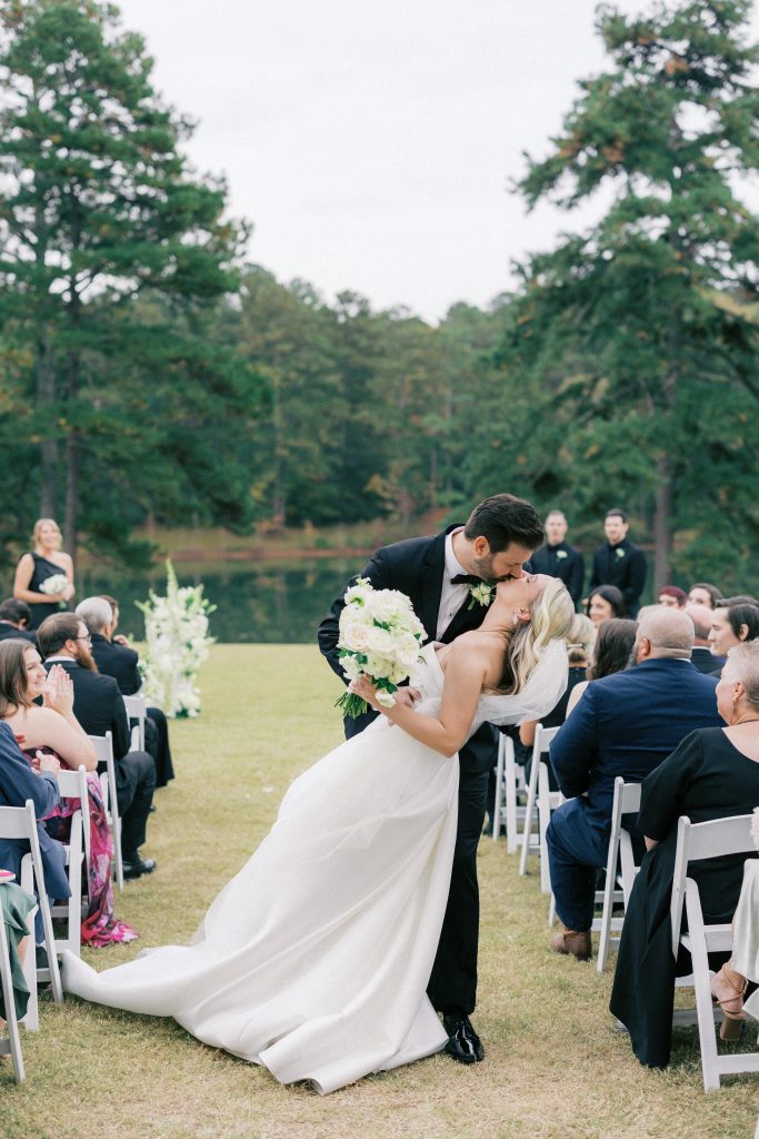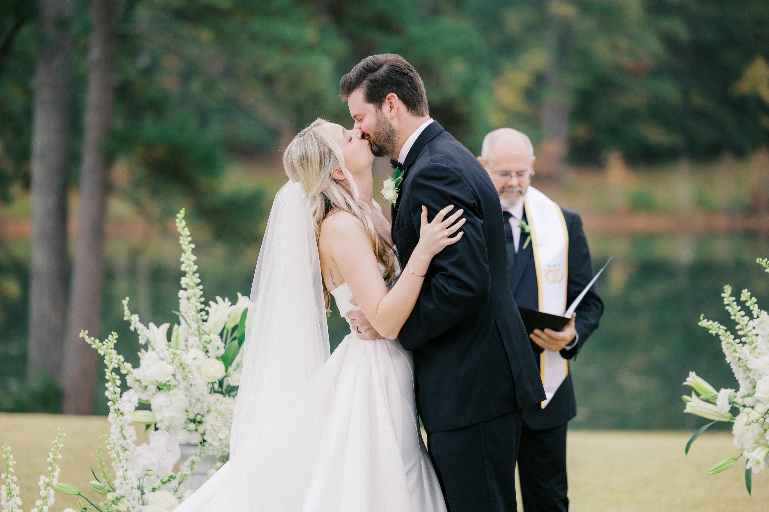 Just twenty miles from Atlanta, Venue at Daisy Hill offered everything Savanna and Ryan envisioned for their wedding. Nestled on seventeen acres, the outdoor ceremony space surrounded by pine trees created a naturally romantic setting. The patio provided a welcoming spot for cocktail hour, while the reception unfolded inside a light-filled space with soaring ceilings, huge windows and exposed wooden beams.
