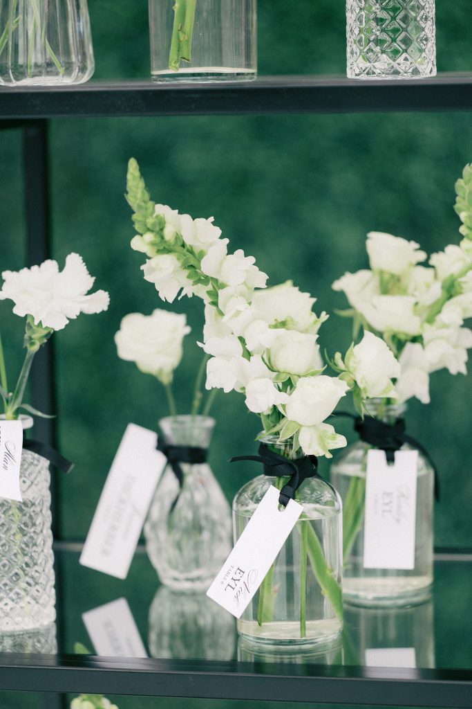 Throughout the day, Savanna and Ryan found unique ways to make their guests feel included. Each guest received their seating assignment on a bud vase, which then become part of the décor on each table. Champagne and individual charcuterie cups awaited everyone at the reception — a creative twist that elevated the usual cocktail fare. When it came to dessert, the couple skipped tradition and leaned into fun. Instead of a cake, they had a donut bar and ice cream sundae station. Guests moved between the dance floor and dessert stations, creating their own sweet treats before returning to the fun.