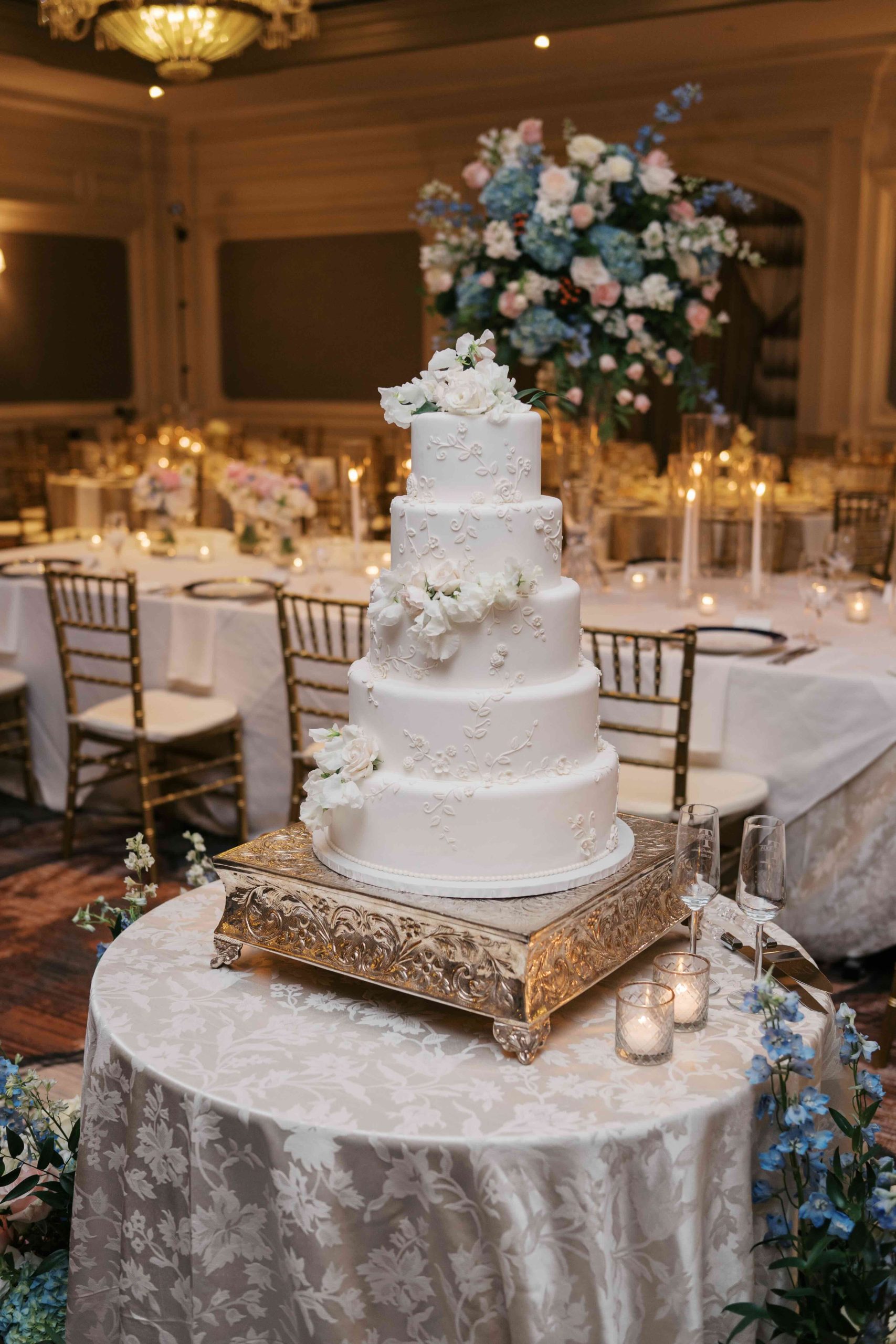 The reception’s champagne, gold, and soft pastel palette created an elegant and warm atmosphere. As the evening progressed, the energy in the ballroom soared when The Celebrity All Stars Band took the stage. Midway through the night, Lauren re-emerged in a white mini dress and personalized cowboy boots emblazoned with her new initials and wedding date — a touch honoring their Texan origin story.