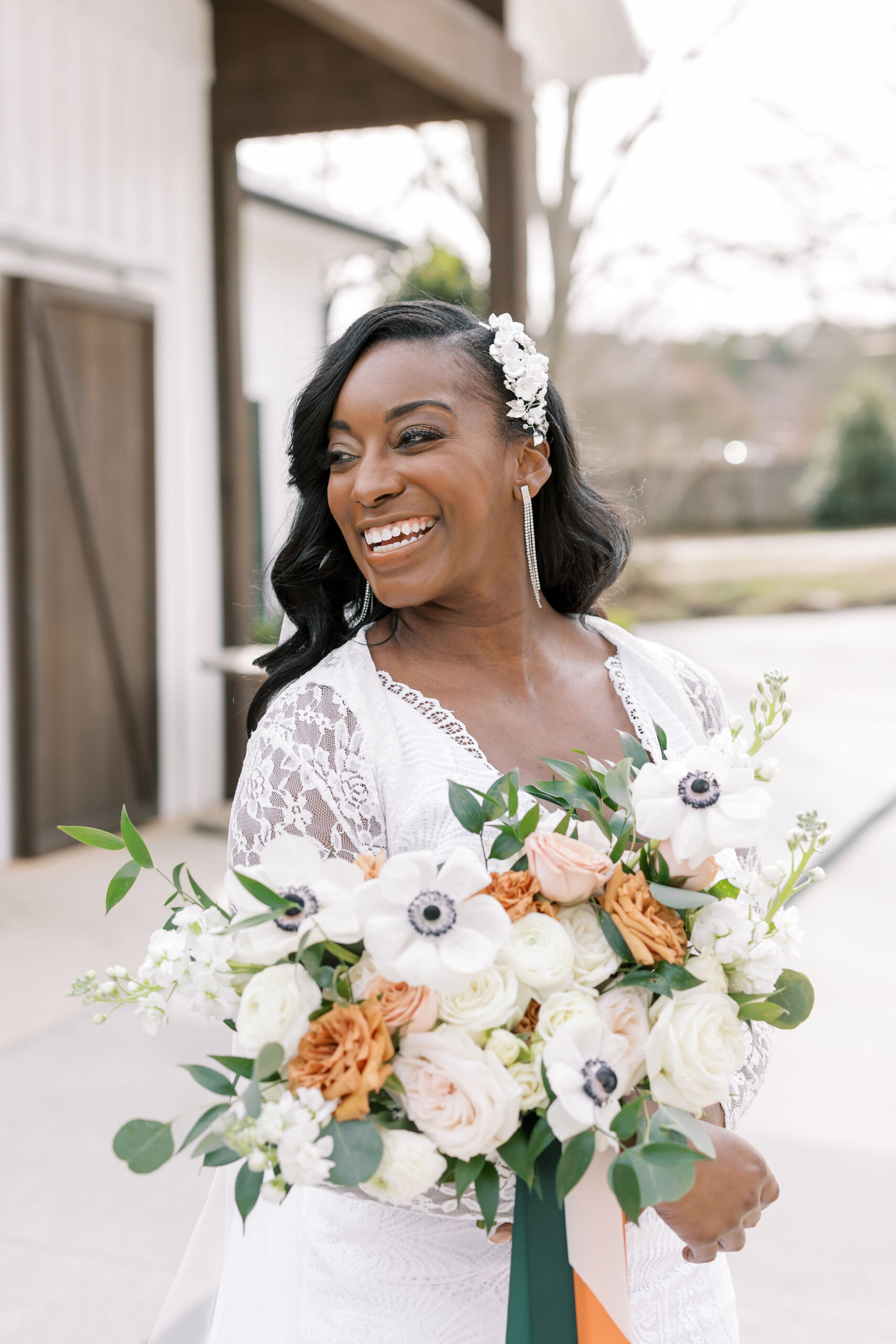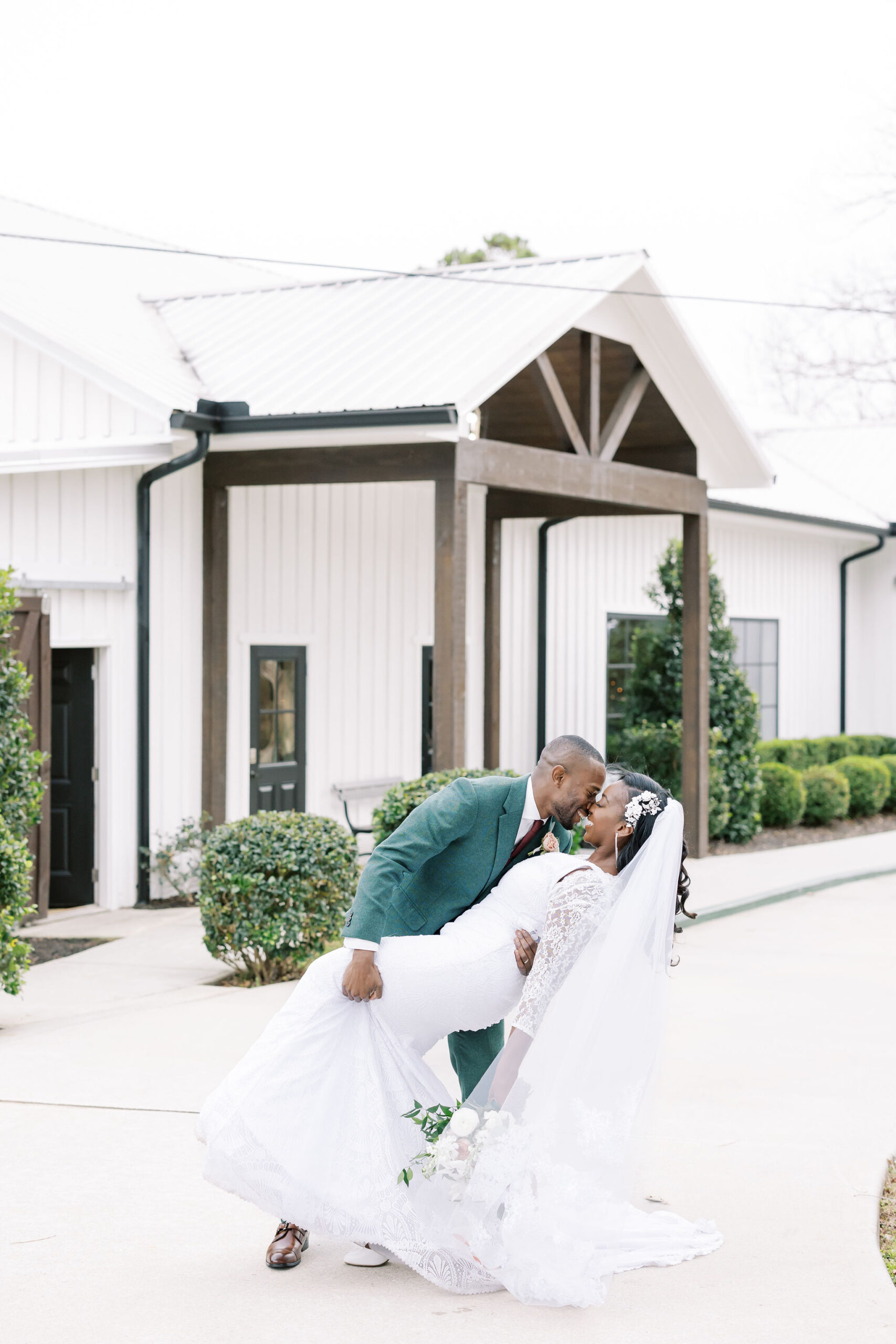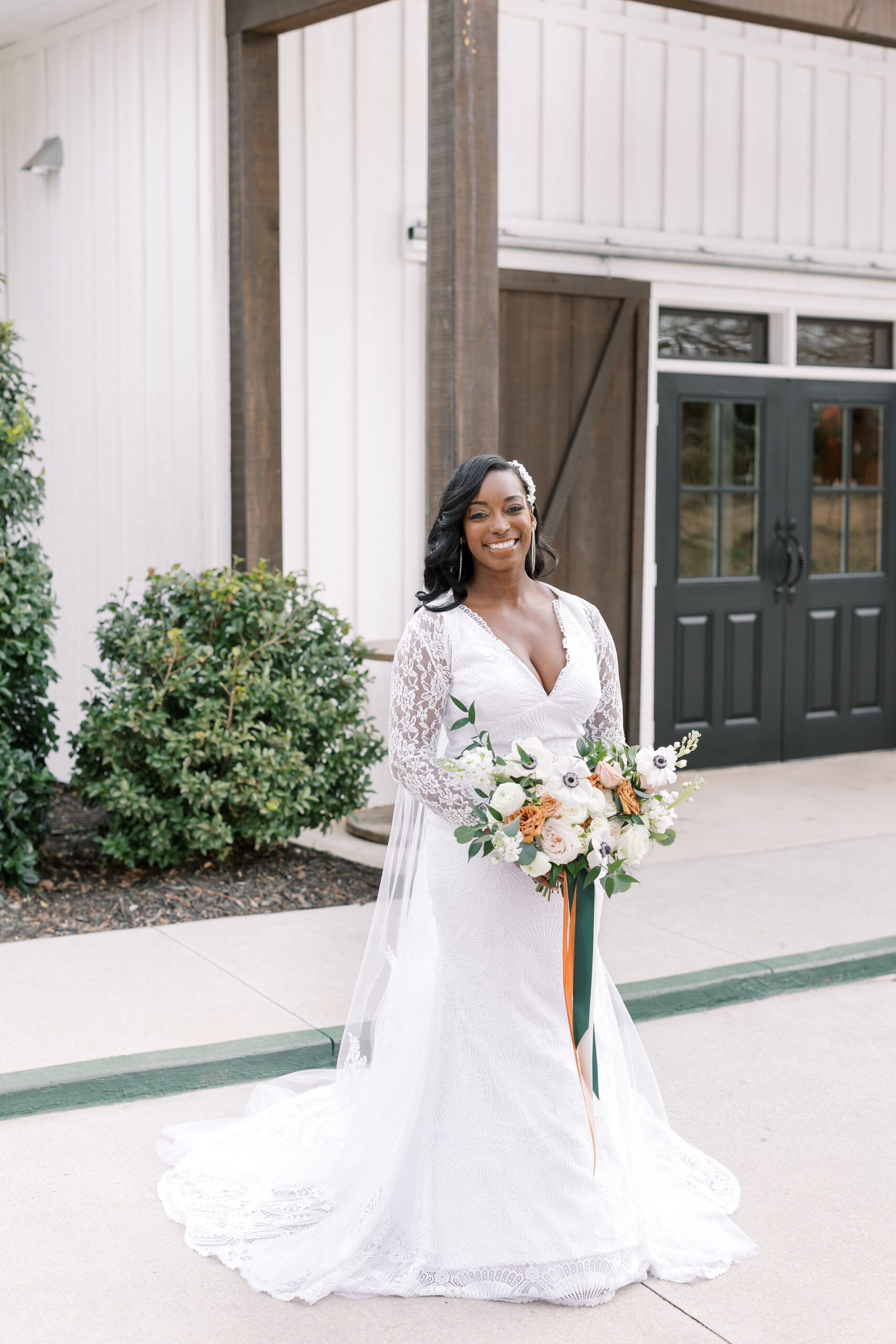 When it came time to celebrate their union, Jasmine envisioned a wedding that reflected their love: peaceful, warm, and filled with moments that made guests feel like family. Koury Farms in Auburn, Georgia, with its blend of rustic charm and natural beauty, provided the perfect backdrop. The couple chose a color palette of soft whites, earthy terra cotta, and shimmering gold accents, complementing the venue’s white barn, lush forest, and sprawling vineyards. Every detail was thoughtfully designed to create an atmosphere of serenity and joy.