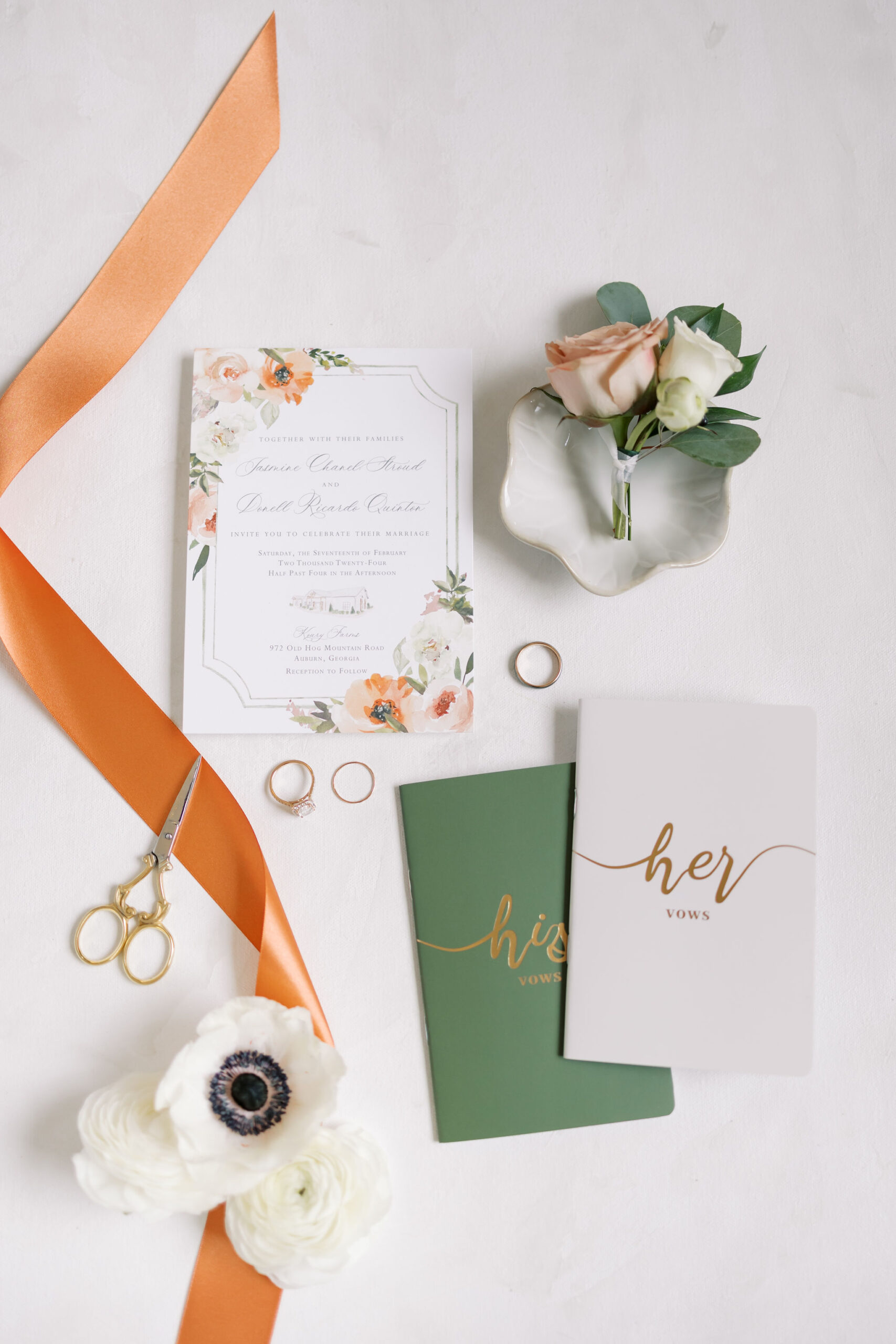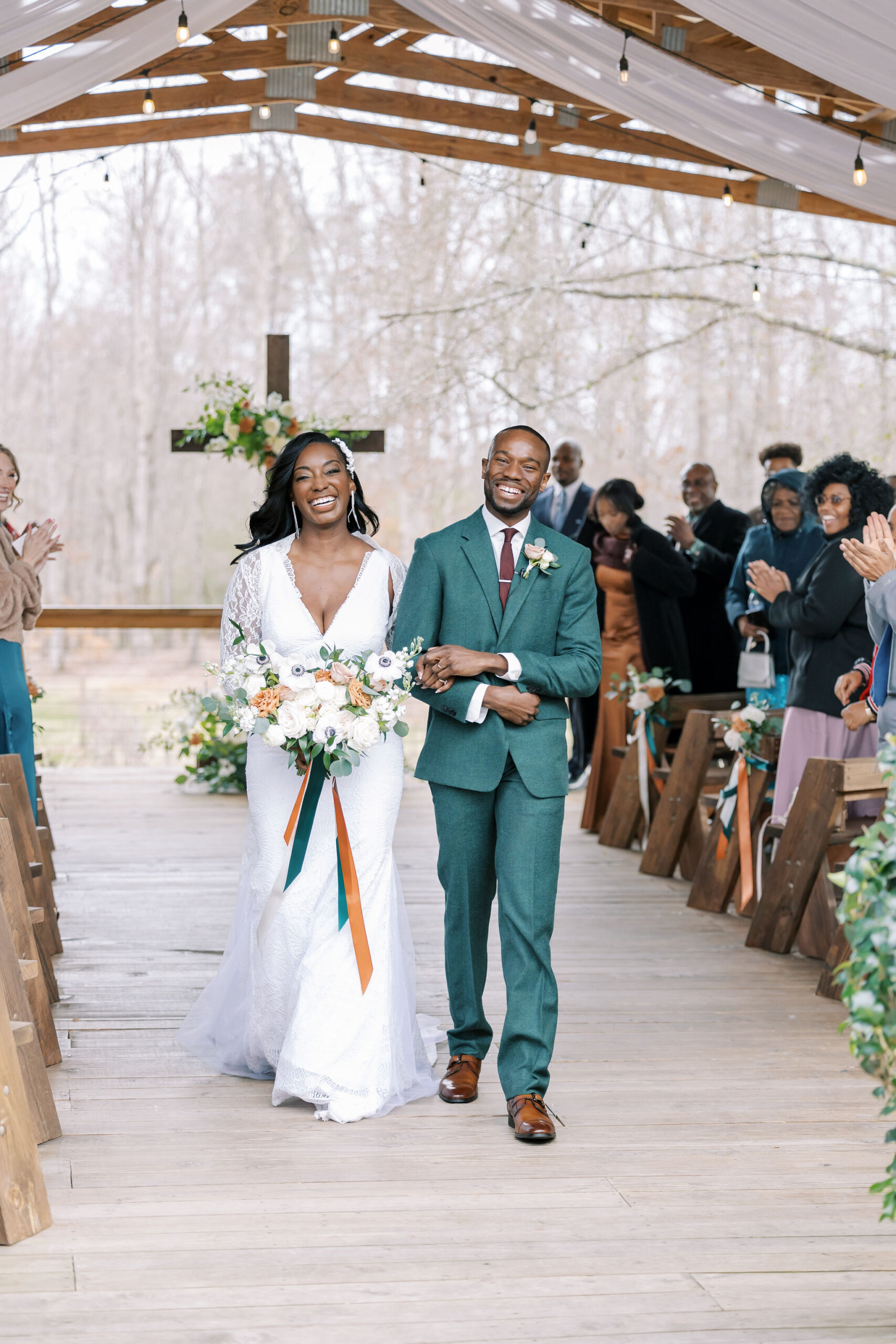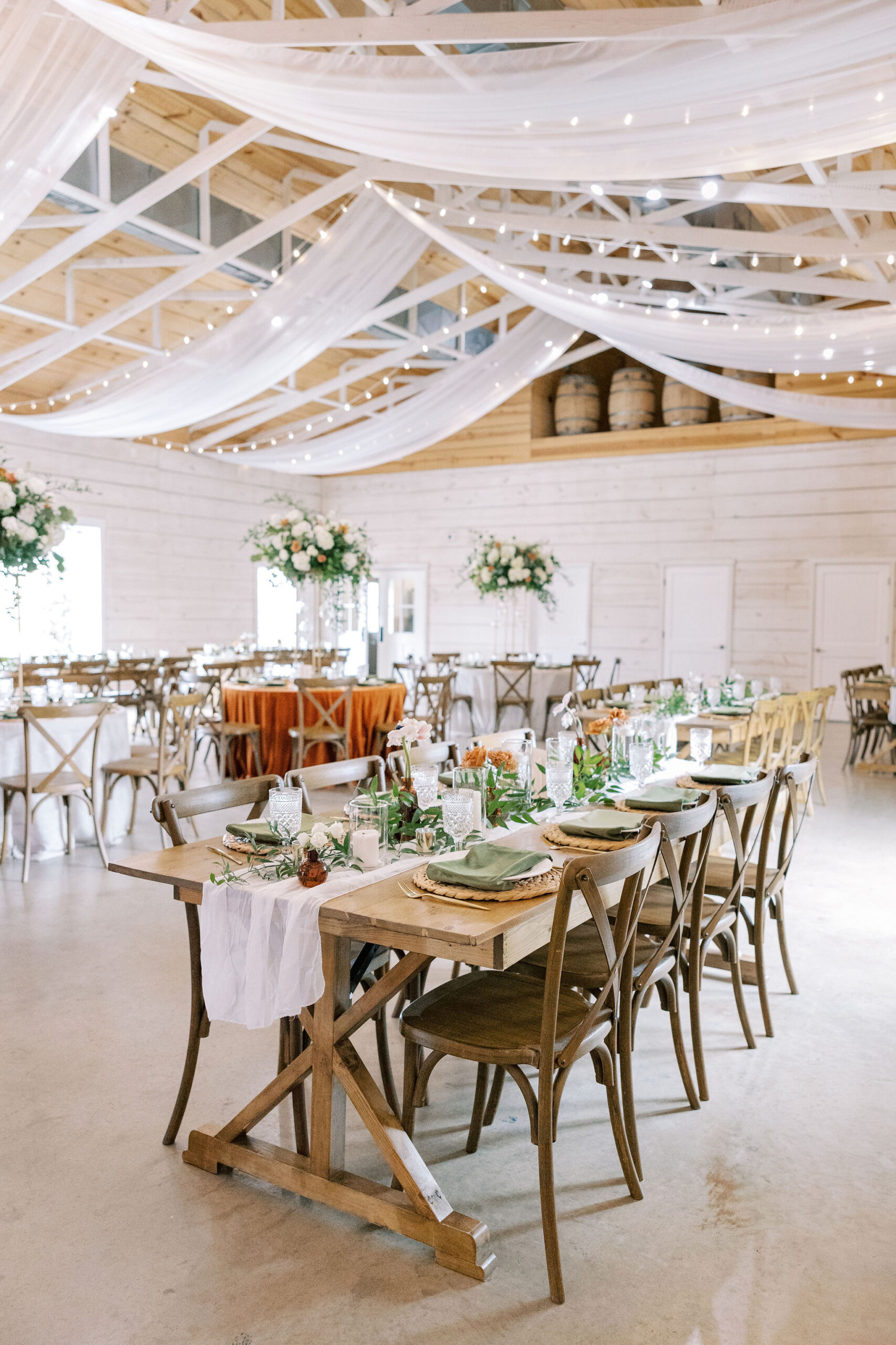 When it came time to celebrate their union, Jasmine envisioned a wedding that reflected their love: peaceful, warm, and filled with moments that made guests feel like family. Koury Farms in Auburn, Georgia, with its blend of rustic charm and natural beauty, provided the perfect backdrop. The couple chose a color palette of soft whites, earthy terra cotta, and shimmering gold accents, complementing the venue’s white barn, lush forest, and sprawling vineyards. Every detail was thoughtfully designed to create an atmosphere of serenity and joy.
