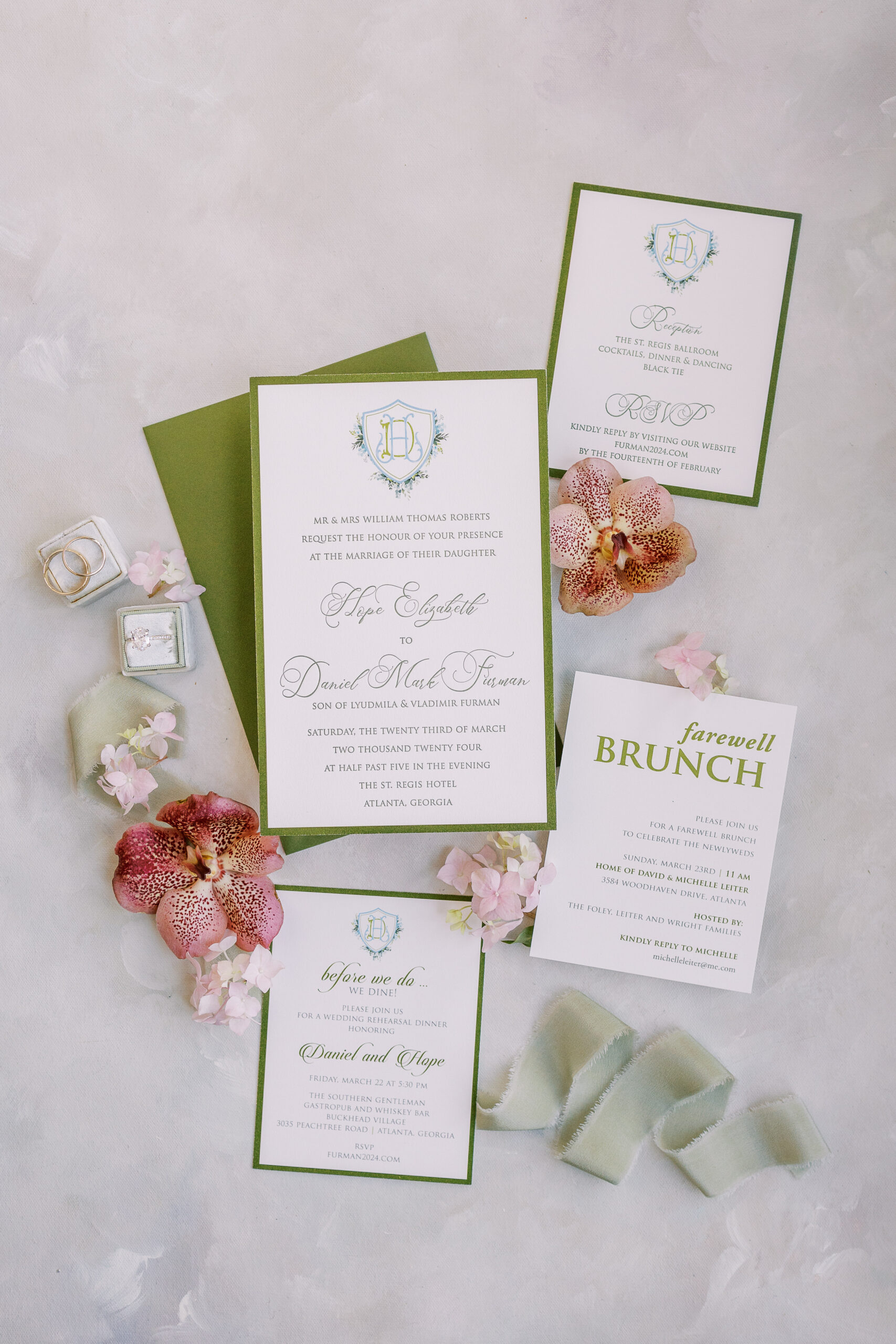 The St. Regis Atlanta has long been a special spot for the couple, making it more than just a pretty wedding backdrop. During Covid, when big adventures were put on pause, they found a little slice of escape at the hotel. Staycations by the pool and pre-dinner cocktails in the lounge became their way of finding joy in a heavy season. You could say that choosing the venue for their wedding felt less like a decision and more like coming home.