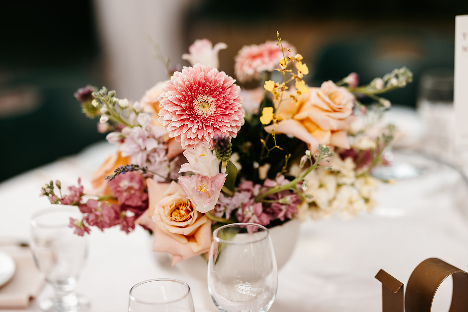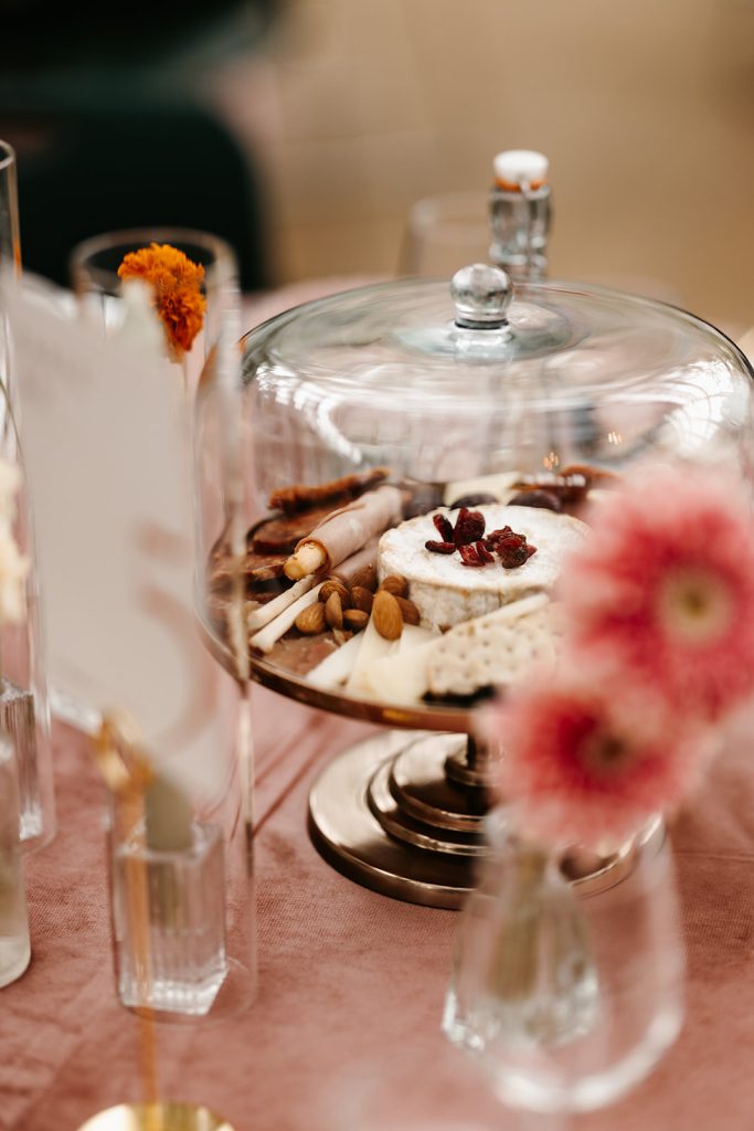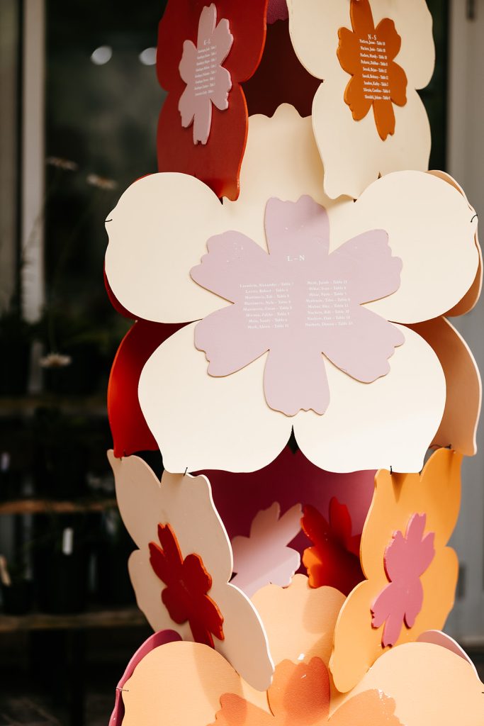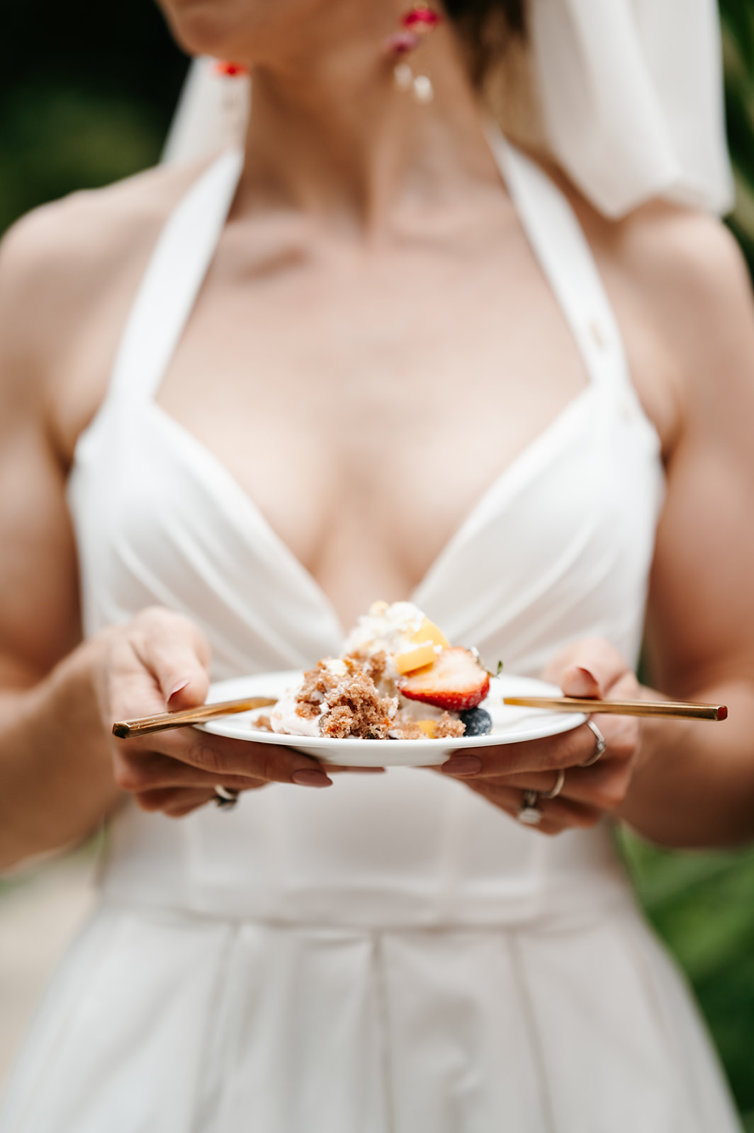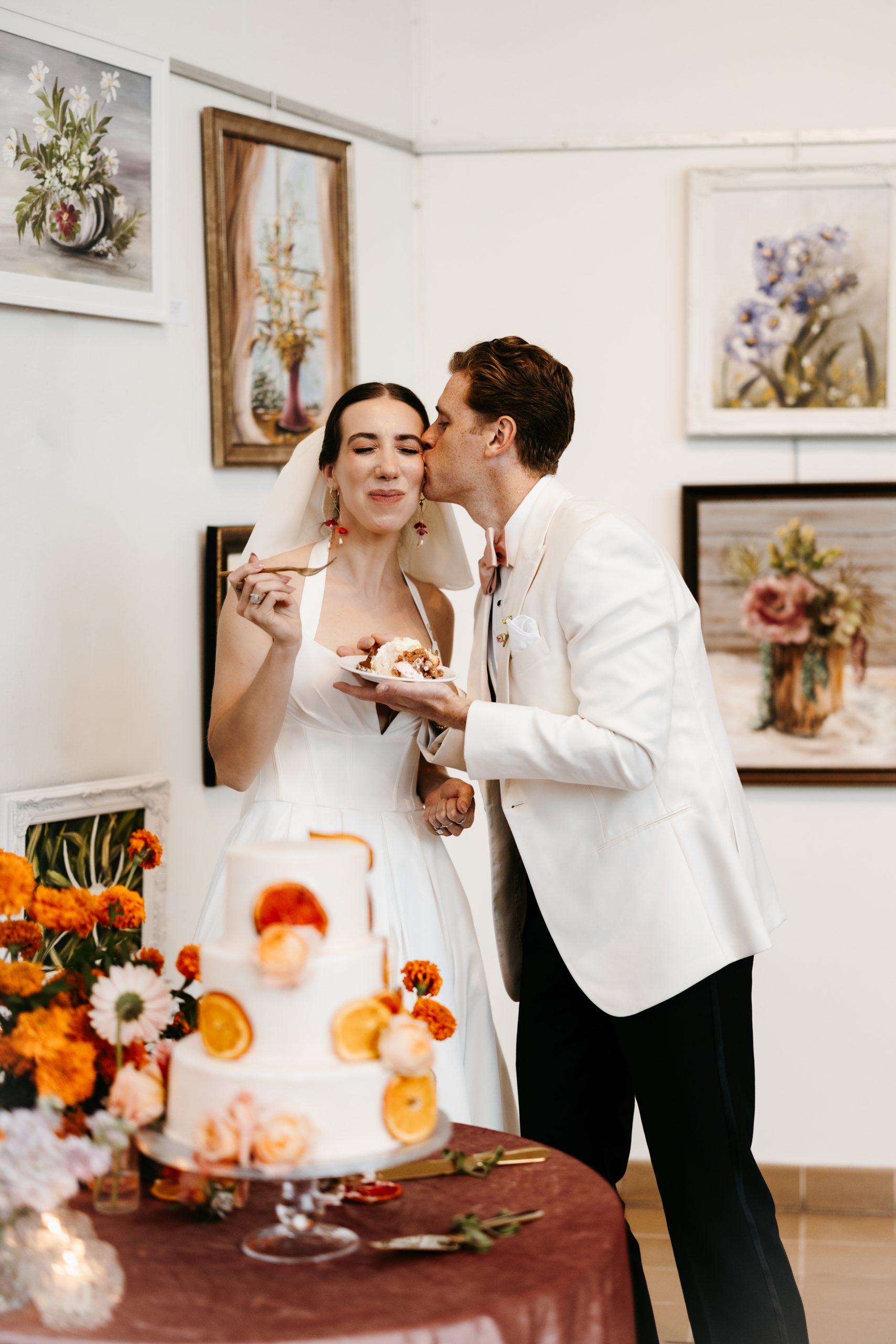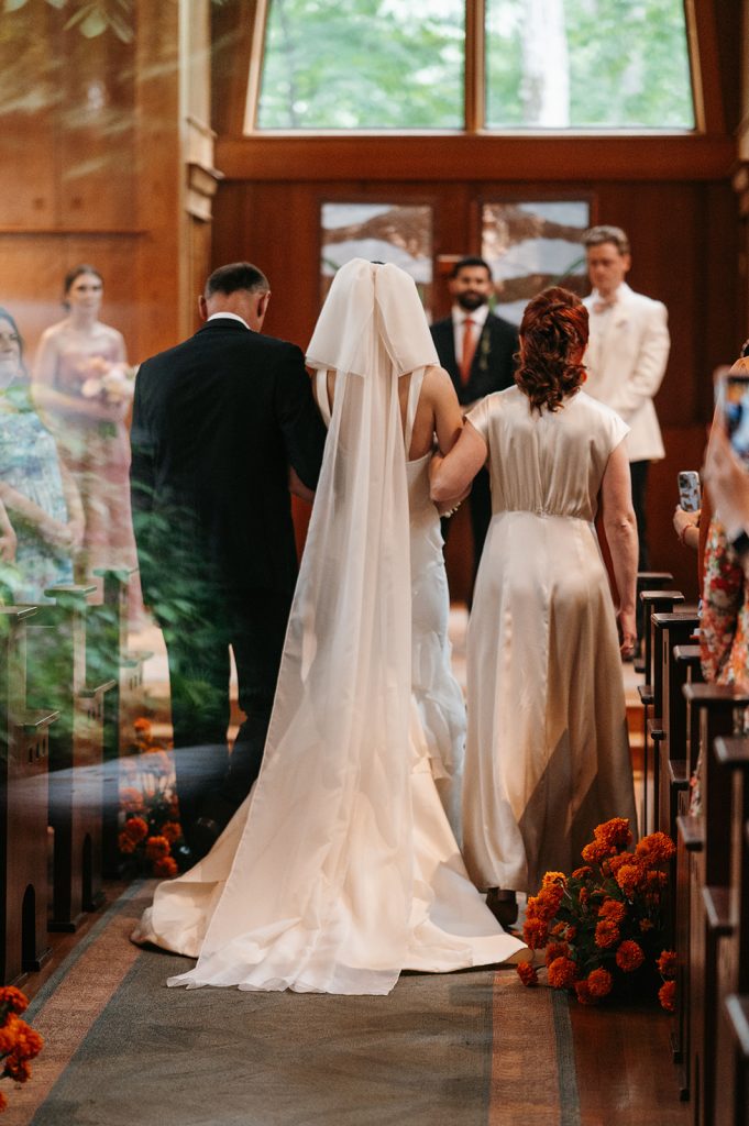 On the day itself, the venue’s natural beauty was brightened further with a citrus-inspired palette of orange, yellow and pink. From marigolds lining the chapel aisle to a carrot cake topped with candied orange slices, every detail added a fresh pop of color to an already enchanting backdrop.