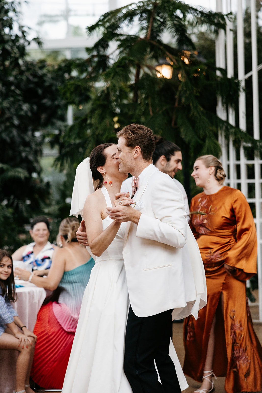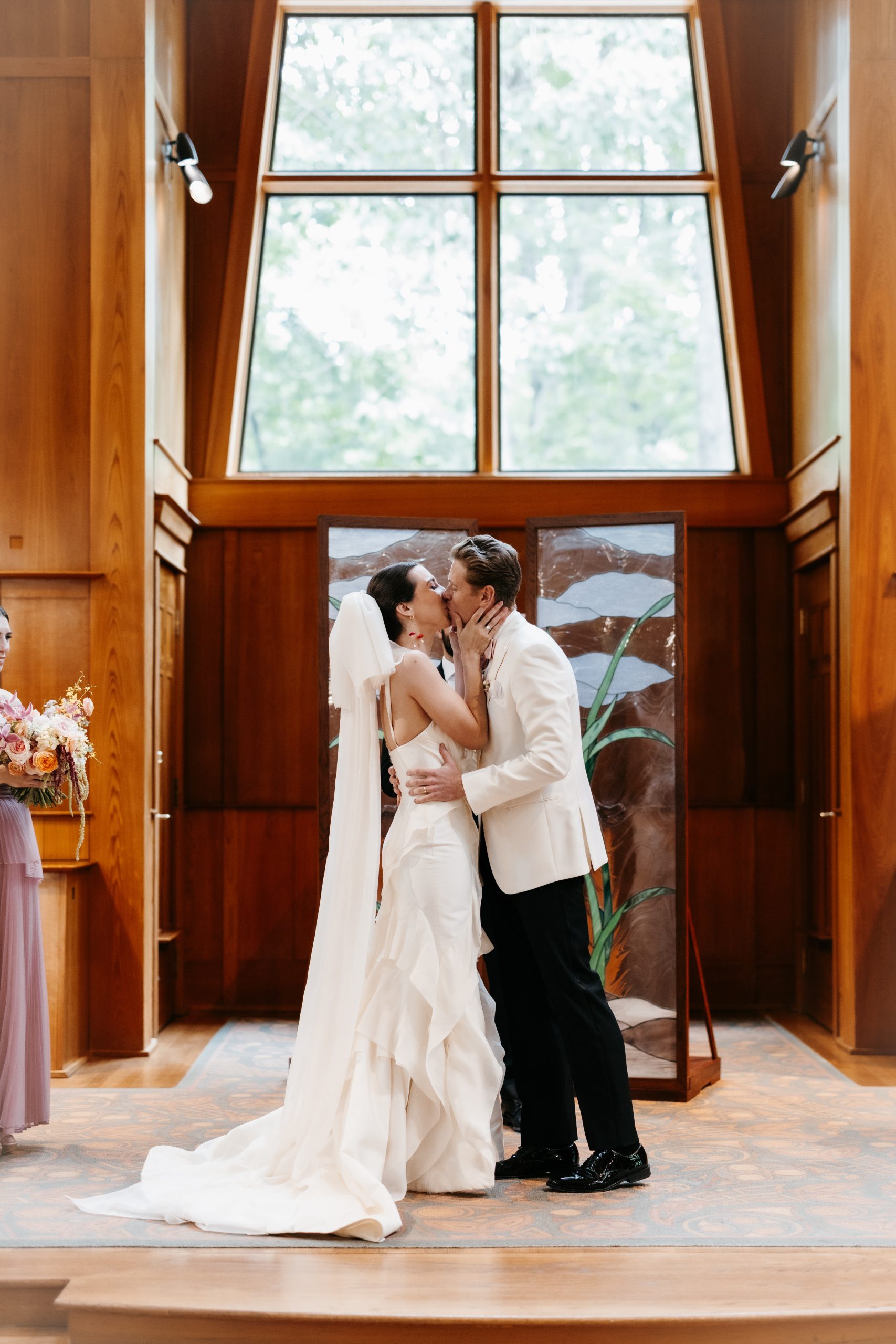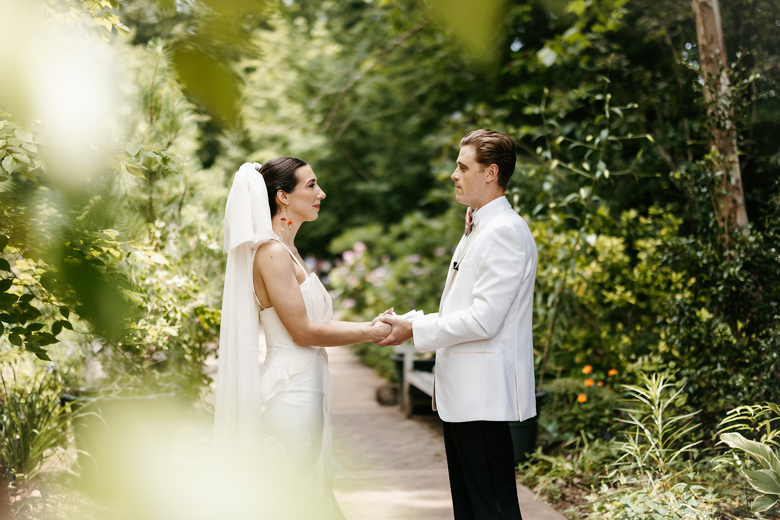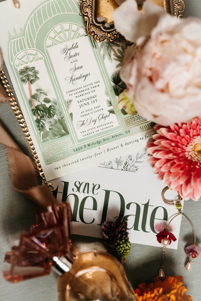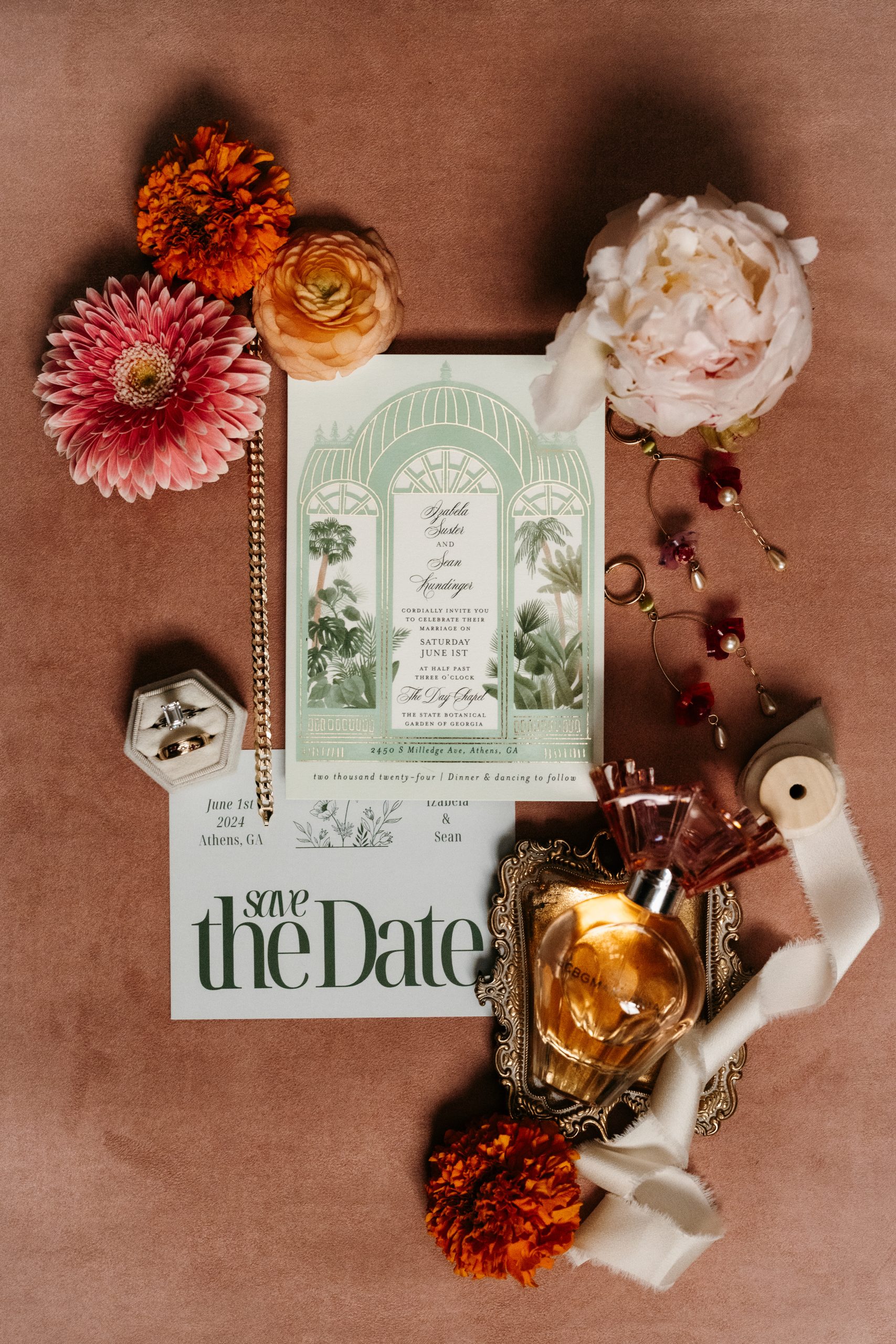 Enamored by plants and flora, Izabela and Sean chose the State Botanical Garden of Georgia in Athens as their wedding venue. Having spent countless hours at the Brooklyn Botanic Garden as a child and later during college, Izabela always imagined marrying inside a greenhouse. While open to greenhouse venues across the country, she and Sean found their dream space just an hour from home. From the first site visit, they were immediately captivated by the natural light of the greenhouse and the midcentury-style chapel where they would exchange vows. The couple made their final decision then and there, and booked their June date on the spot.