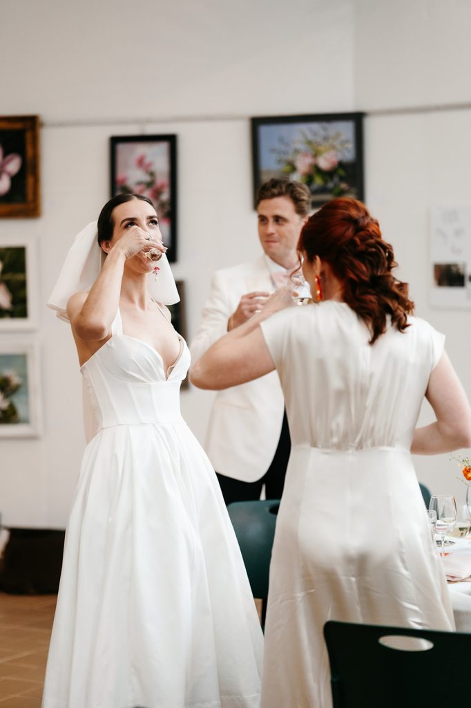 Izabela’s Croatian heritage was just as present throughout the celebration. Guests were welcomed with sprigs of rosemary pinned to their lapels, a Croatian tradition symbolizing loyalty and love. A tamburaši band played classic songs during cocktail hour, filling the air with the sounds reminiscent of the bride’s childhood summers abroad. And each reception table held a bottle of Croatian rakija, homemade by Izabela’s grandparents in 1995 (the year of her birth) and specifically saved for her future wedding day. Nearly three decades later, guests raised their glasses of the aged fruit brandy in a hearty toast to the couple’s marriage.