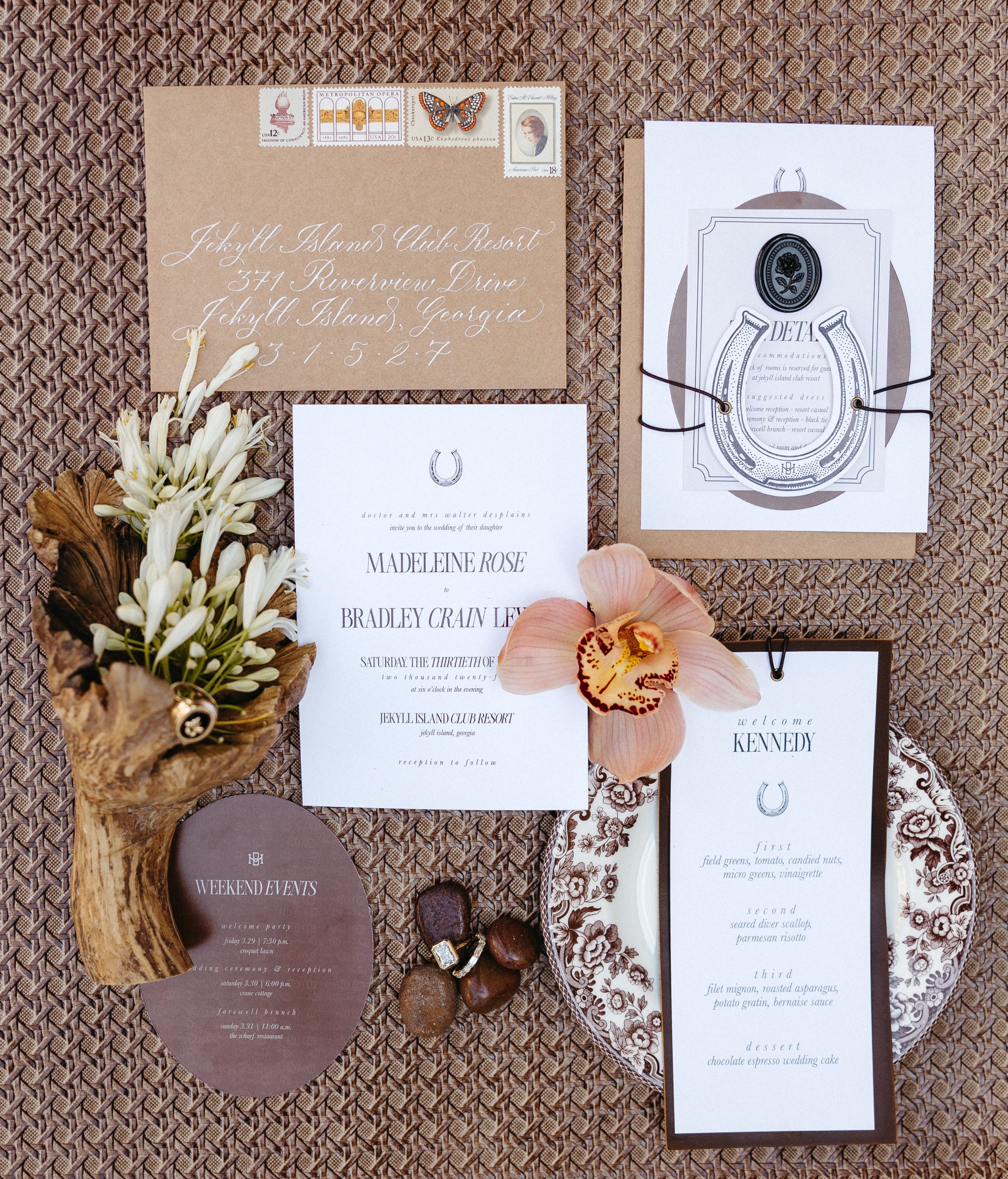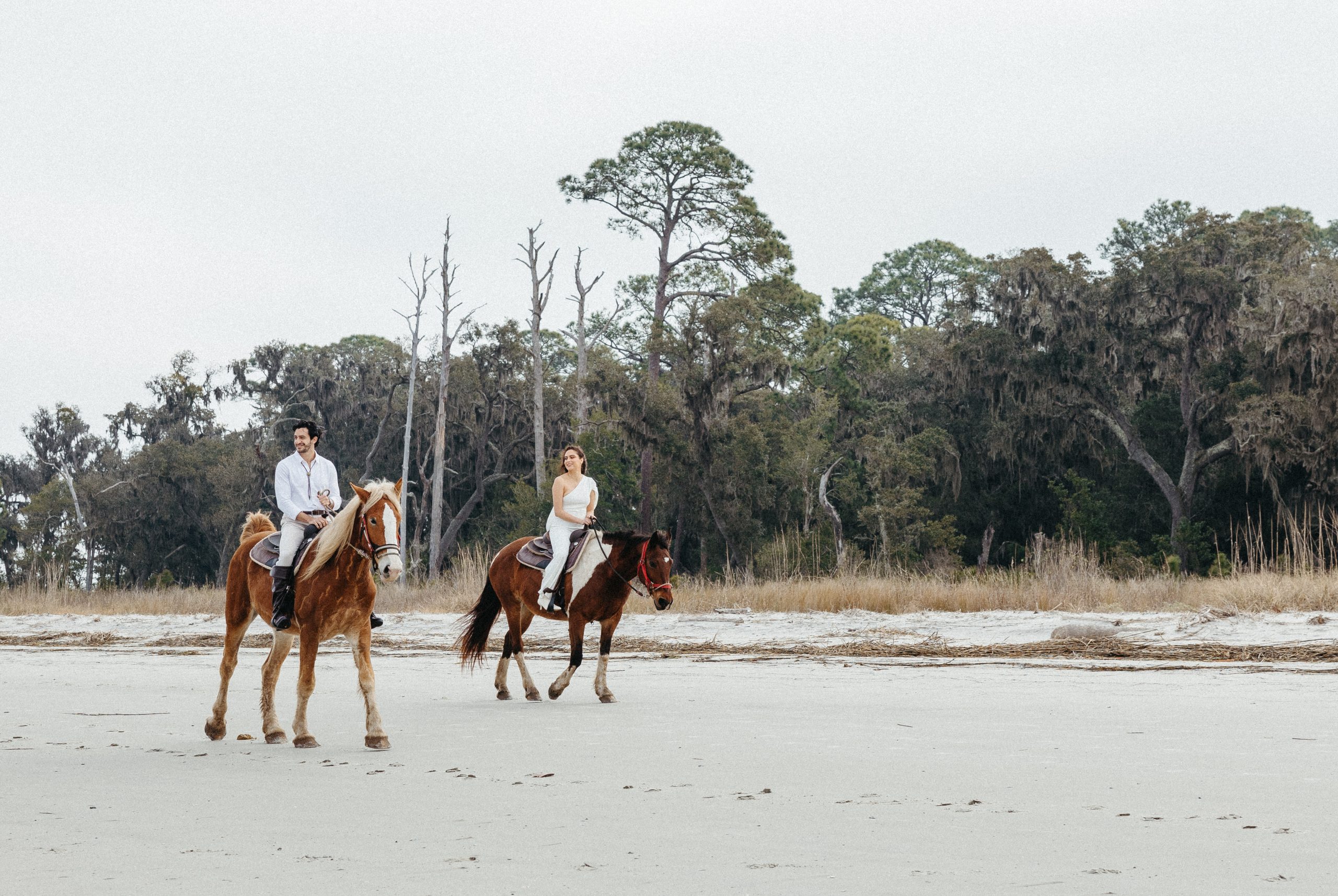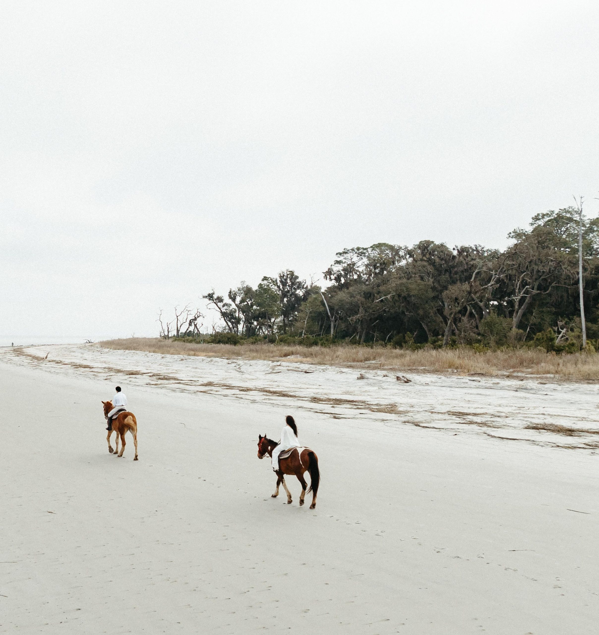 Inspired by the quiet sophistication of Jekyll Island, this editorial by Fox & Quinn blends coastal minimalism with Southern tastes. Set at the Jekyll Island Club Resort, the shoot captures the island’s duality: windswept, untouched shoreline alongside the refined, European-inspired elegance of its historic estates. From wild and free horseback portraits along the water to sculptural tablescapes framed by sun-soaked arches, each scene reflects the intimacy of a wedding weekend shaped by nature and intentional design. In the cadence of coastal poetry, every frame reveals the island’s quiet romance, chipping away the division between the natural world and human touch.