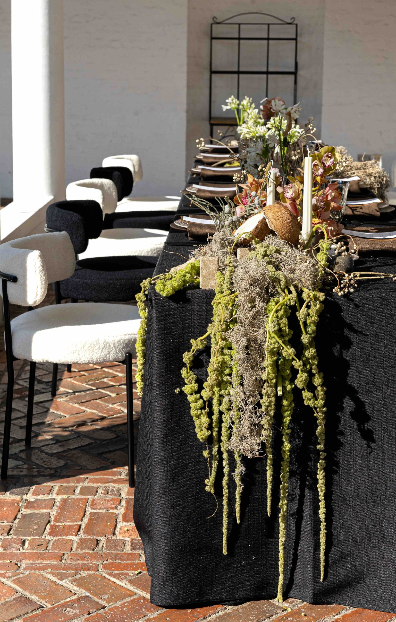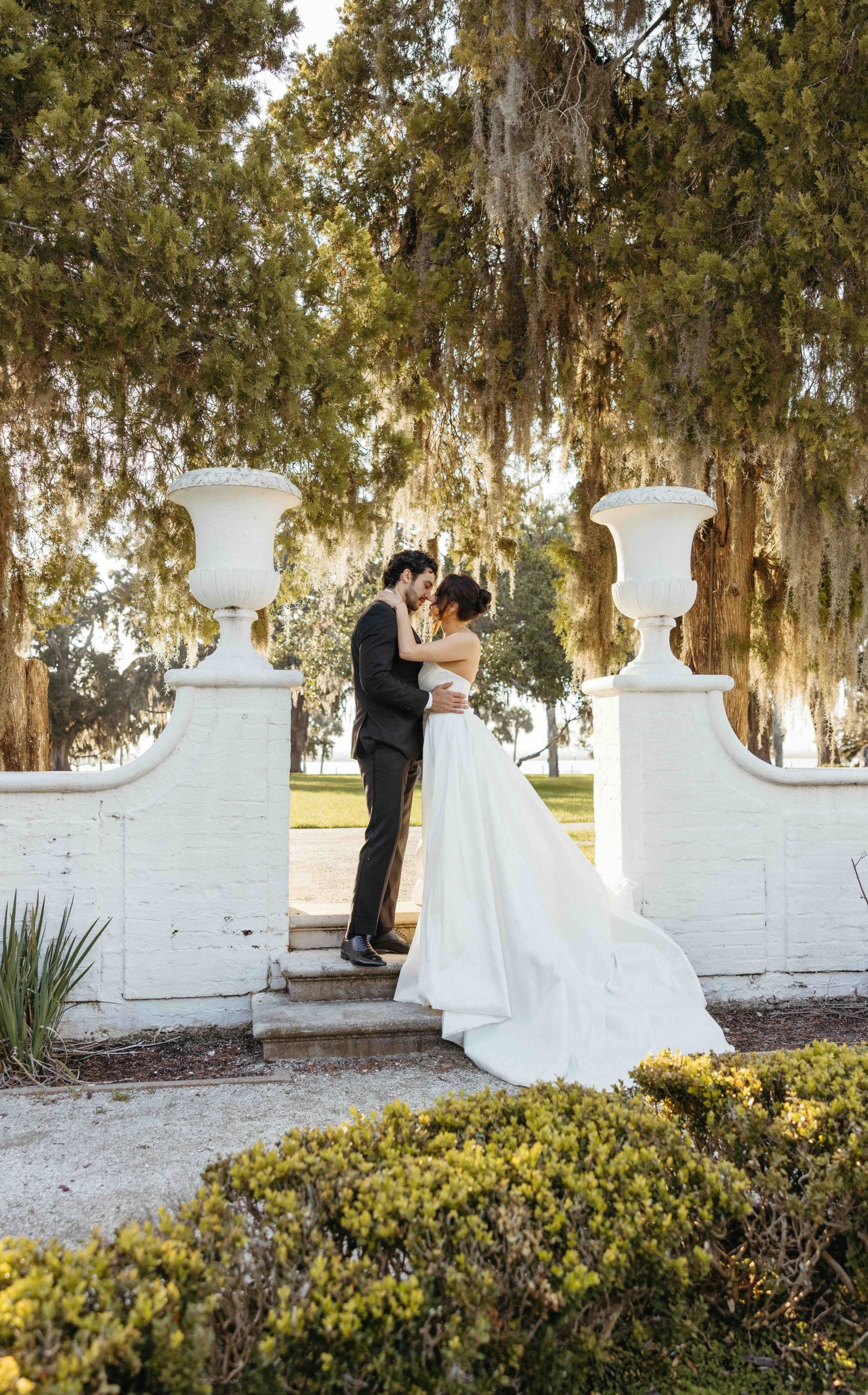 We wanted to create a world where modern design and natural elements feel intertwined. Jekyll Island provided the perfect canvas — its beaches offered movement and intimacy, while the estate’s architecture gave us structure and drama. This shoot is about quiet luxury, textural storytelling and the kind of romance that feels deeply rooted in place.