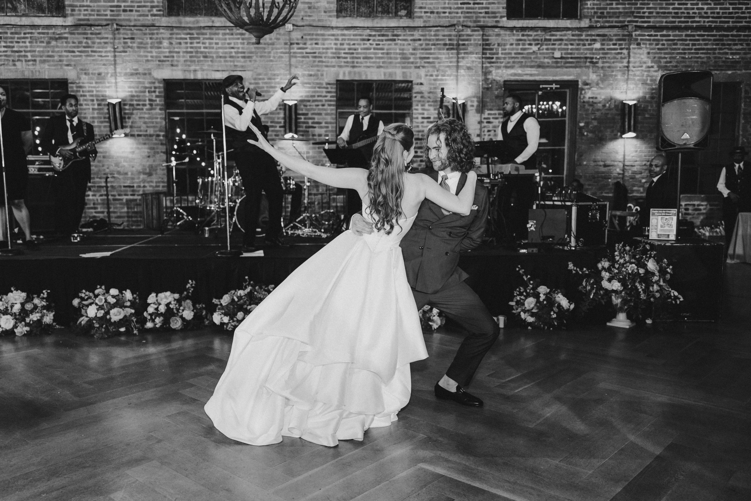 For the couple, they wanted a reception that was all about great food, great music, and an unforgettable party. With Sawyer’s background in a band and the couple’s shared love of live music and concerts, the night unfolded like a performance — full of infectious energy, nonstop dancing, and a truly legendary celebration. Their first dance, complete with spins, dips, lifts and impressive choreography by Mary Me Wedding Dances, earned a standing ovation from their guests. Later in the evening, Sawyer — an accomplished drummer himself — surprised guests by joining the wedding band for a live performance of his own.