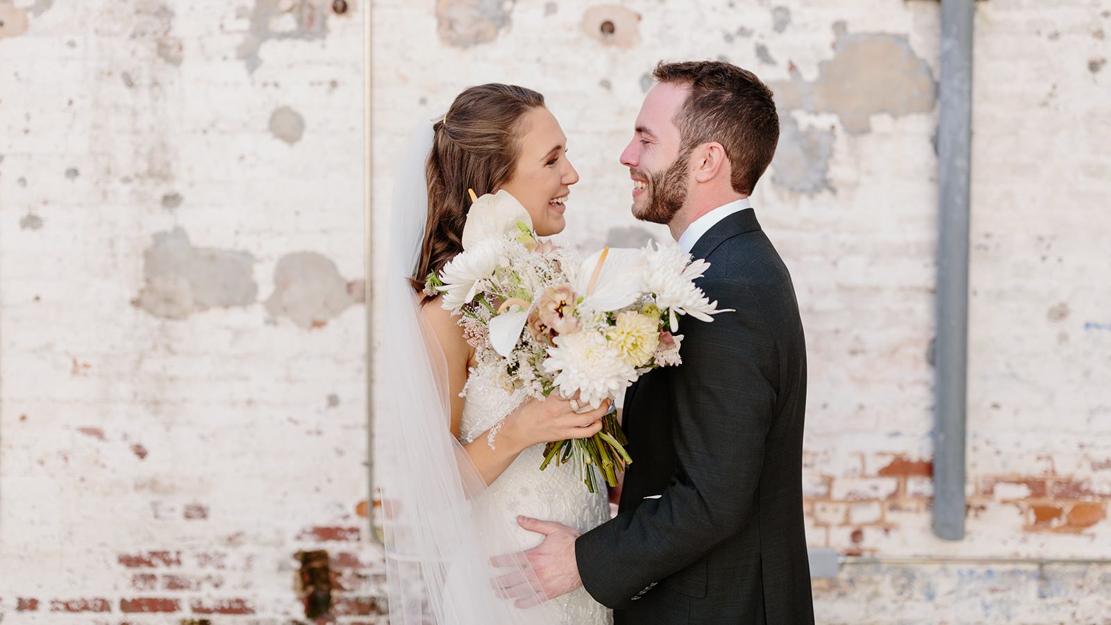 Beaming smiles and joyful tears defined Katherine and Austin’s Georgia industrial-chic wedding. The couple’s emotional celebration of their love took place in February 2022 at The Engine Room in Monroe (just under an hour’s drive from Atlanta). The venue was once part of the Monroe Cotton Mills, and the best historic elements from 1895 were kept intact, like exposed brick walls, weathered paint, heart pine columns, original sliding fire doors and stunning hardwood floors. With added modern amenities this old-meets-new venue was the perfect spot to begin a lasting union.