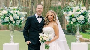 Therese and Donald celebrated their love with a lavish New Year’s Eve wedding, ringing in 2020 with a formal black-tie ceremony. The winter wonderland theme made for photographic backdrops at every turn with dramatic florals and silver trees.