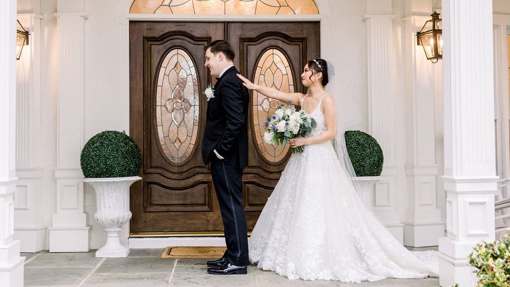 The couple chose Little River Farms in Alpharetta, GA as their venue, thanks to its “grand home” feel and the ability to have an outdoor gazebo ceremony, but an indoor ballroom reception. Soft lighting, traditional white molding and textured stone accents created an inviting yet elegant atmosphere. As a result, guests felt comfortable and relaxed, yet elevated touches established the day as a special moment in time.