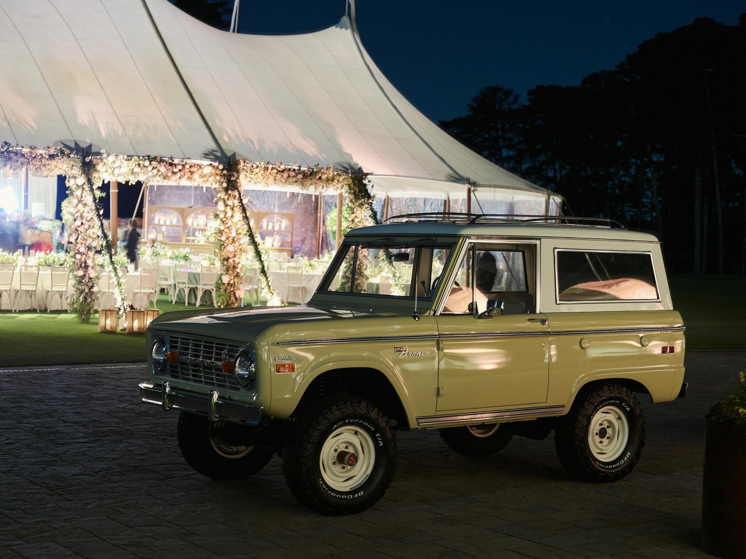 Olivia and Davis chose a seated dinner, giving everyone a chance to connect and linger over the meal. Then the Jordan Kahn Orchestra took the stage and transformed the evening into nonstop dancing that guests are still talking about. As the night drew to a close, the newlyweds made their grand exit in a butter-yellow vintage Ford Bronco, driving off into the night in style — a final perfect detail in a day that was everything they dreamed of and more.
