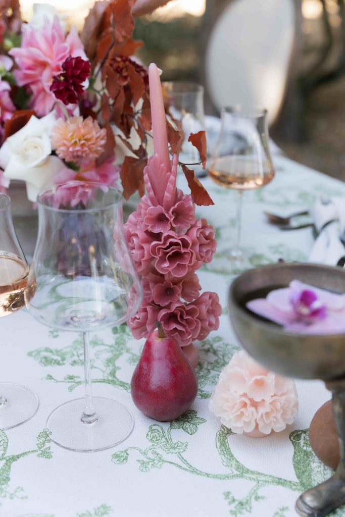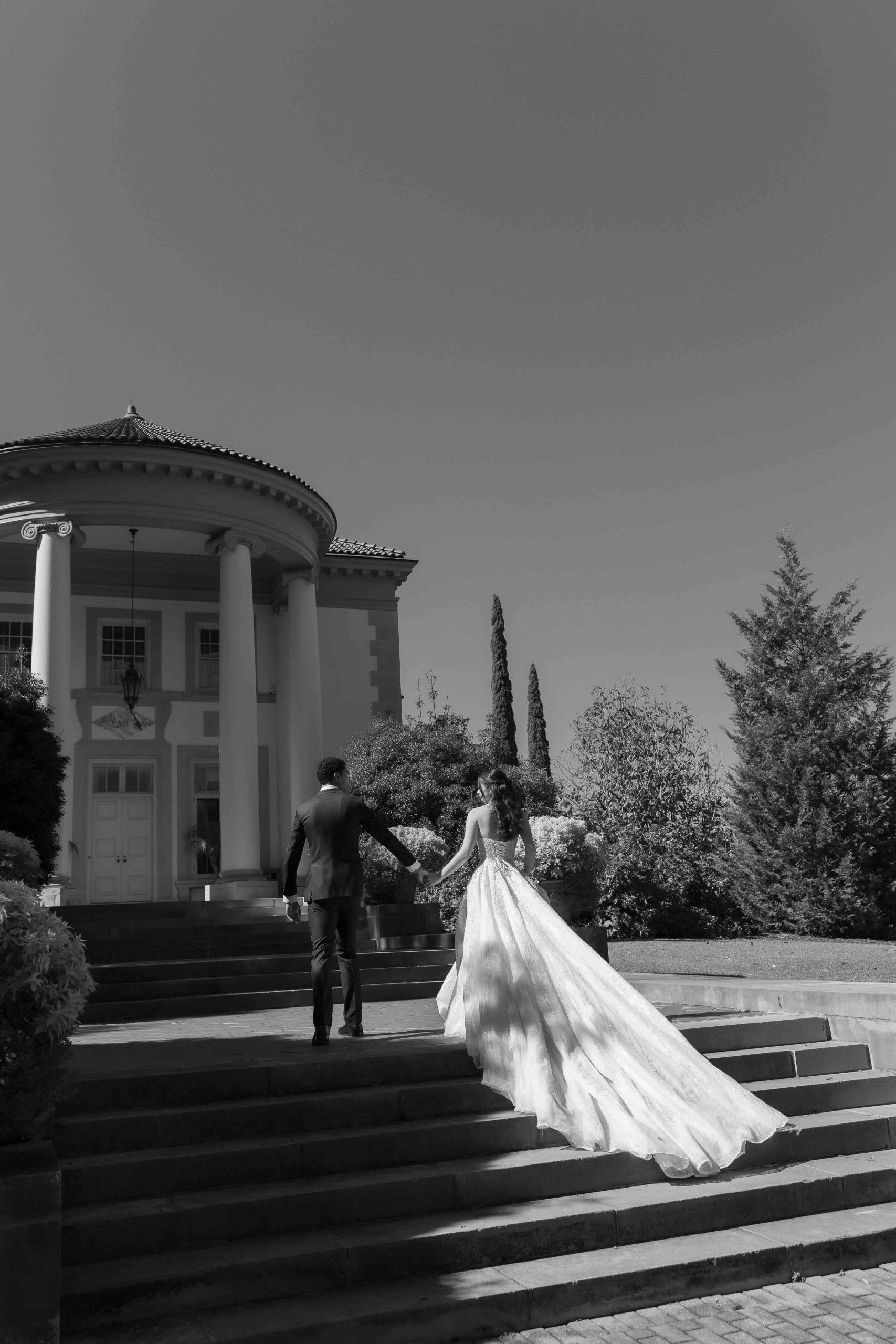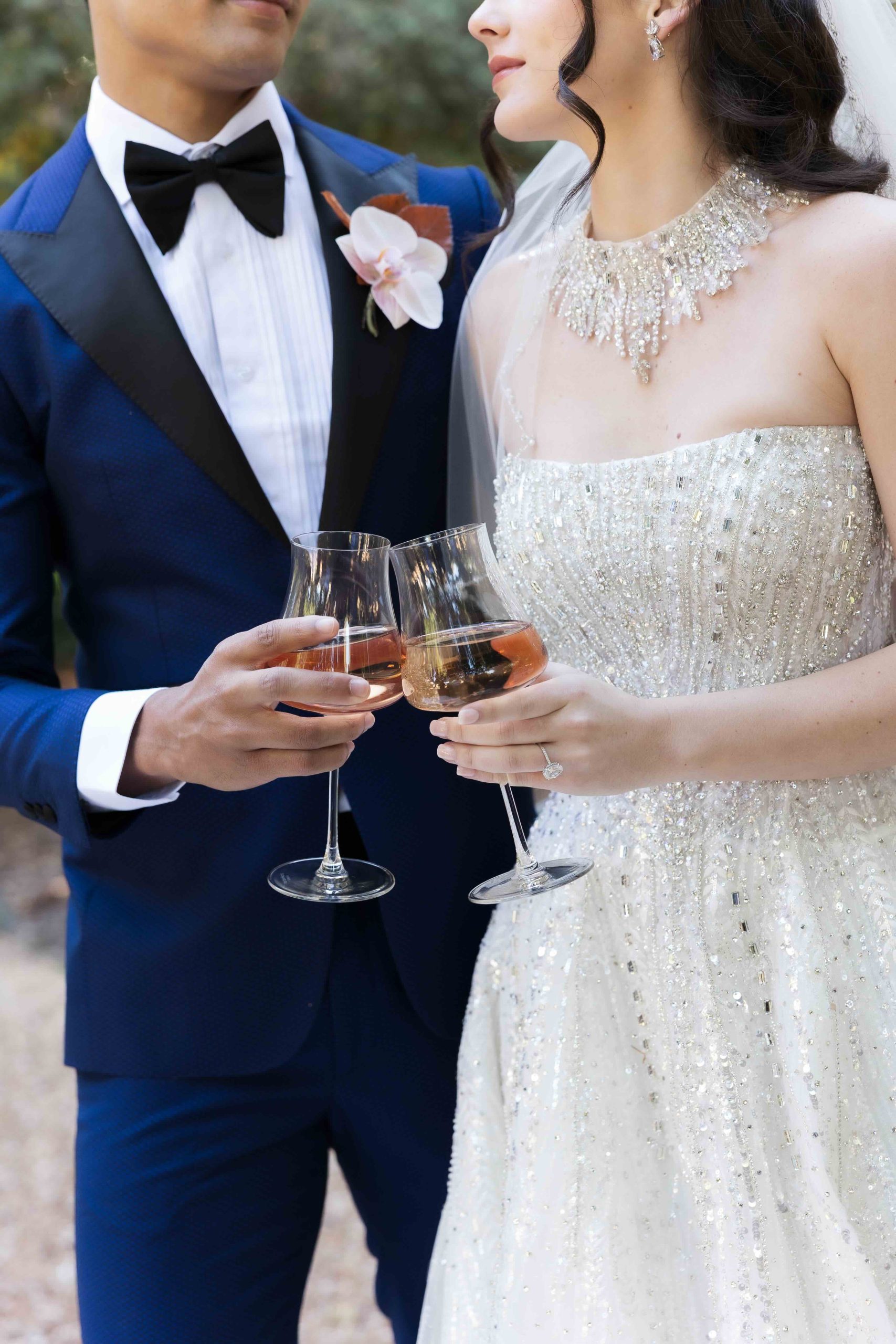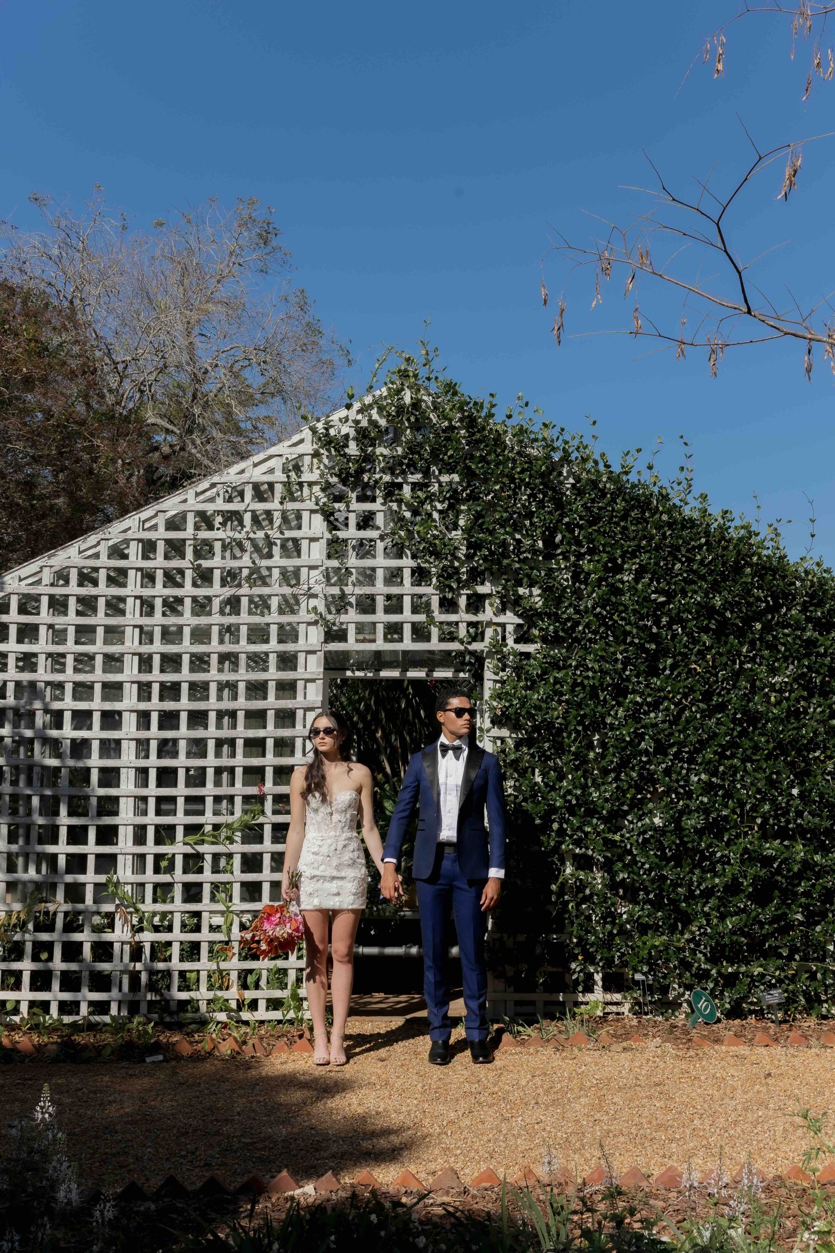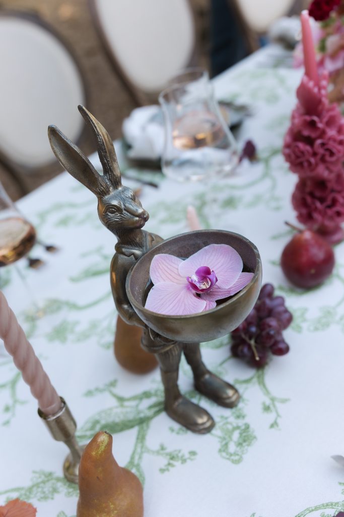 Step into a story of Southern charm, rewritten through a contemporary lens at Hills & Dales Estate. While English Spode dinnerware, toile-draped tables and artisanal tapers grounded the shoot’s palette in tradition, the colors told a more daring story. Bright pink orchids brushed against coppery fall foliage, creating jolts of modernity along the storied terraces. The bride moved through it all in an embellished gown that sparkled beneath natural canopies, lending a touch of poetic juxtaposition. Rather than recreate the past, this shoot let the old and new converse, resulting in a setting that read like classic literature brought to life.