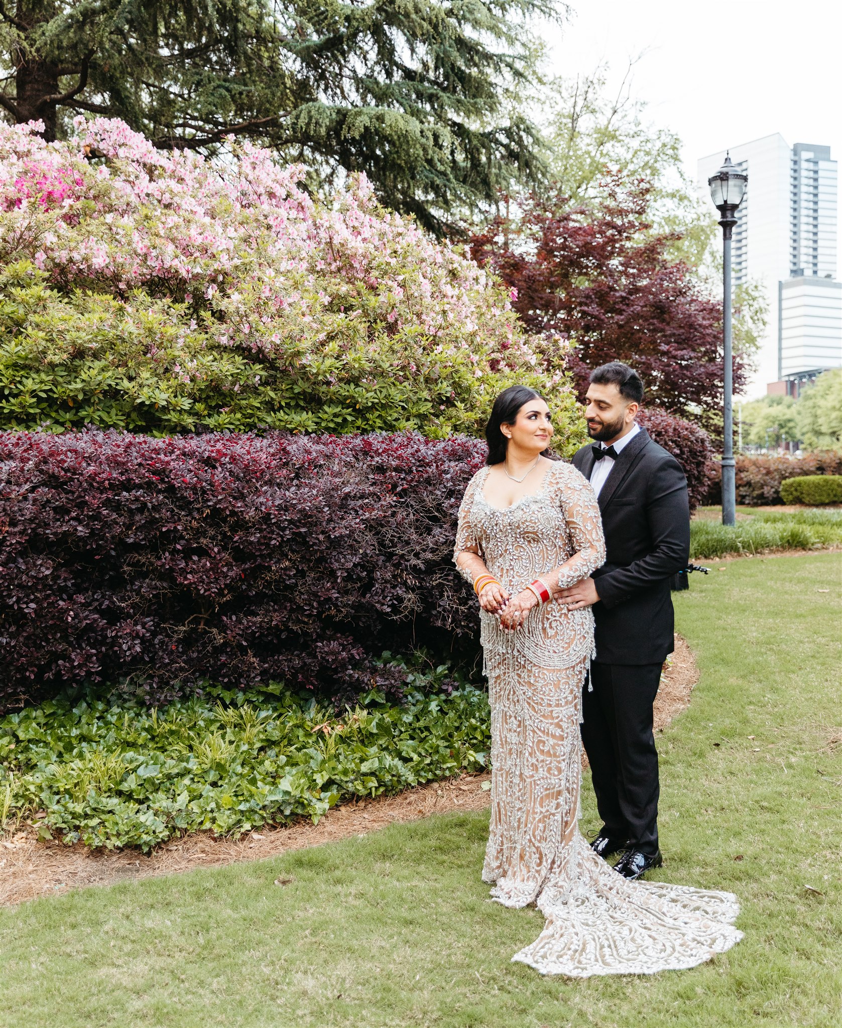 The following morning, the Country Club of the South transformed once again — this time into a peaceful haven for Tanya and Ali’s traditional Punjabi Anand Karaj ceremony. The wooden interiors served as a warm backdrop for deep red and tan roses, creating a tranquil space filled with intention and reverence. As Tanya and Ali exchanged vows in traditional attire and surrounded by loved ones, the setting reflected the beauty and significance of the moment.