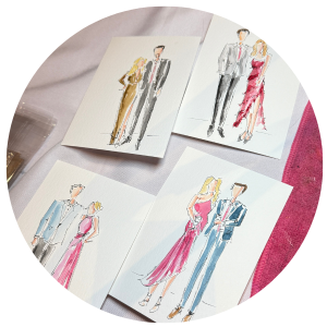 The Painted Party Creative Studio brings the magic of live art to your wedding guests through custom watercolor portraits. During cocktail hours and receptions, guests can get their photo taken so it can be used as a reference for a surprise gift: their very own fashion illustration! These portraits capture personality and joy, offering a thoughtful, interactive favor. Led by the artist Raegan Rowland and her assistant Ashley Knopp, this dynamic pair brings charm, connection and a touch of whimsy to your special day.